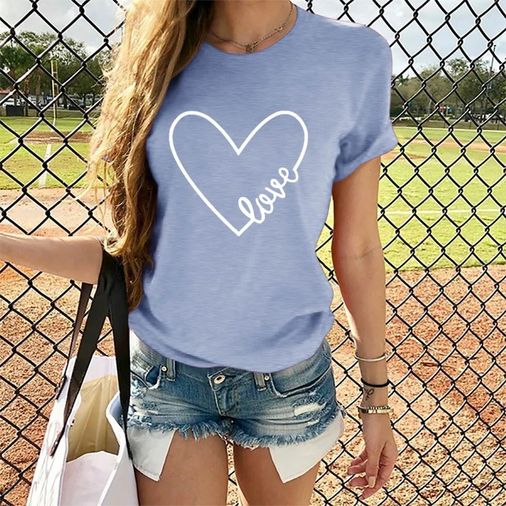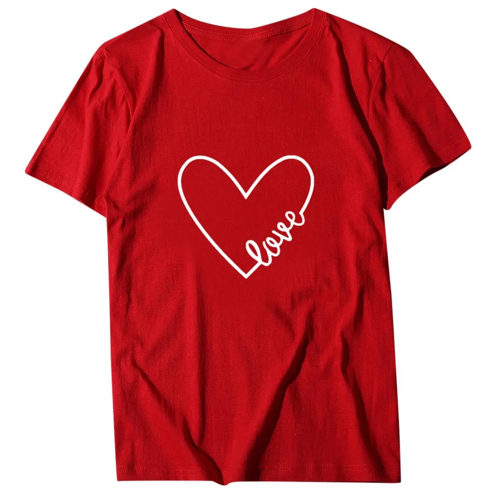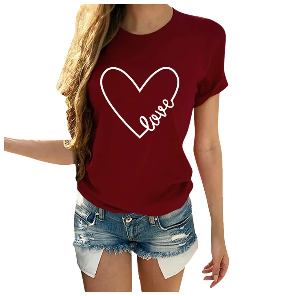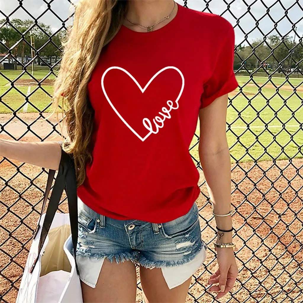 Женские повседневные топы на День святого Валентина с коротким рукавом и круглым вырезом с буквенным принтом в форме сердца