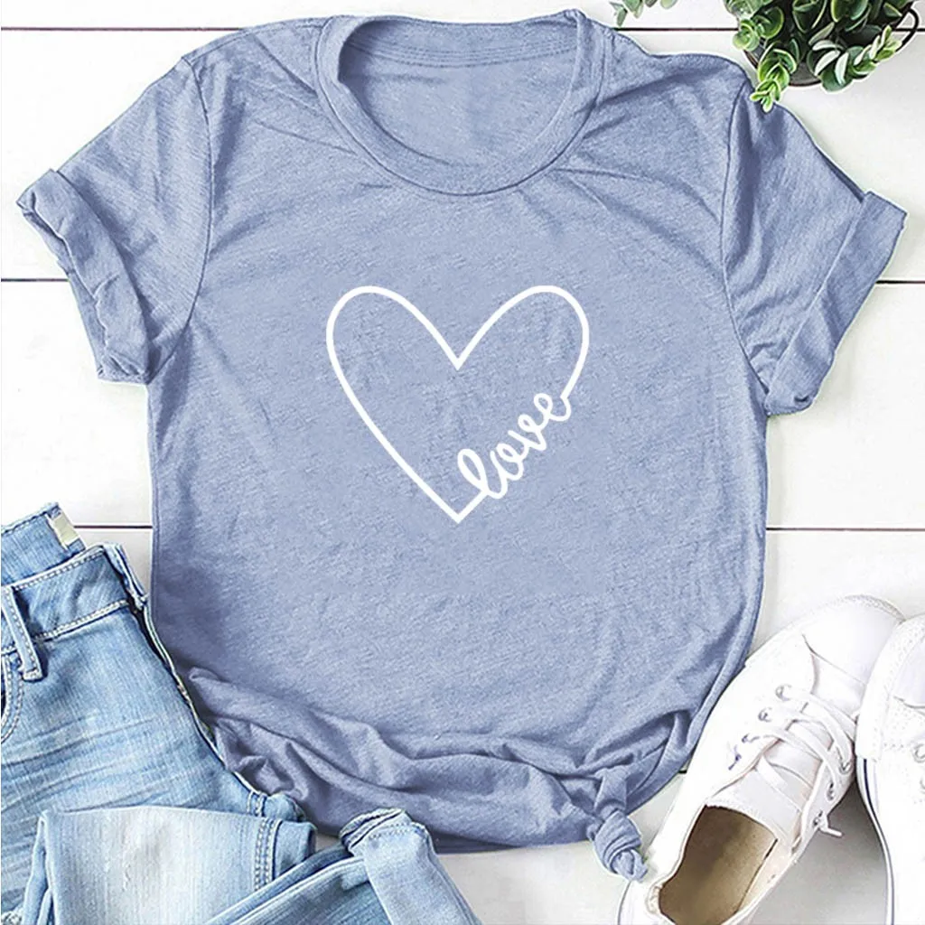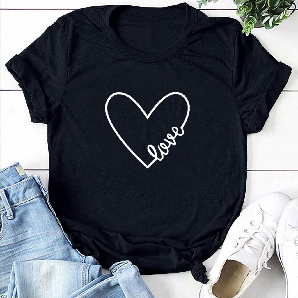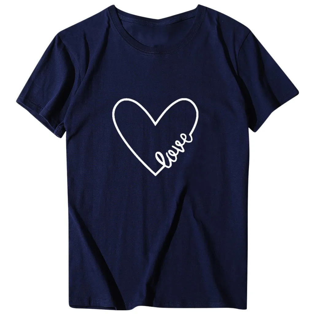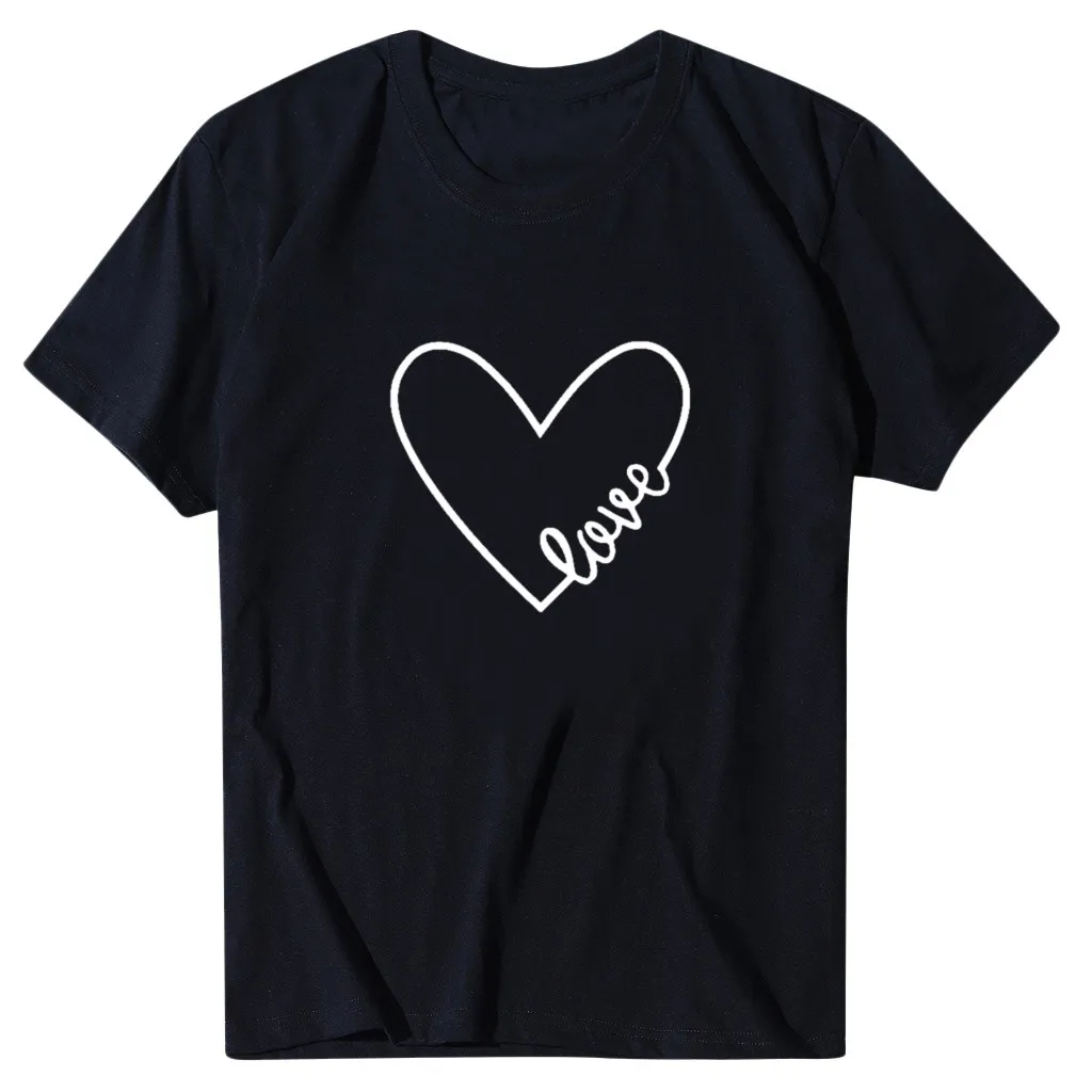 Женские повседневные топы на День святого Валентина с коротким рукавом и круглым вырезом с буквенным принтом в форме сердца