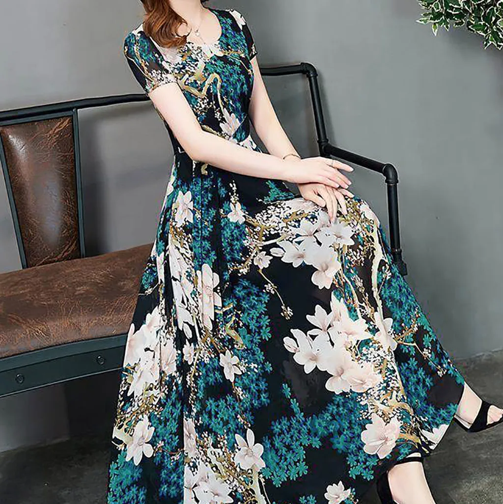 Особенности: винтажное платье с принтом, круглым вырезом, длинными рукавами, макси-платьем, короткими рукавами, винтажным стилем, платье с запахом, осенне-весеннее платье.