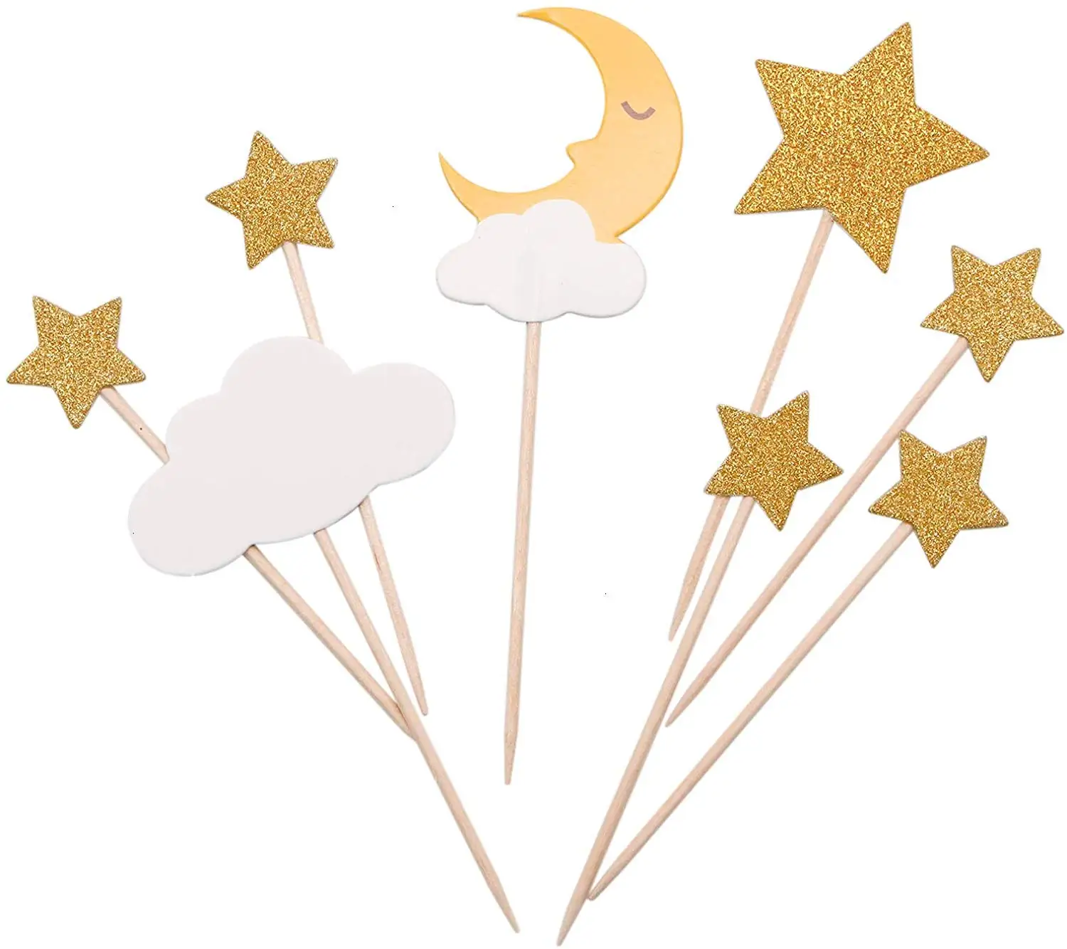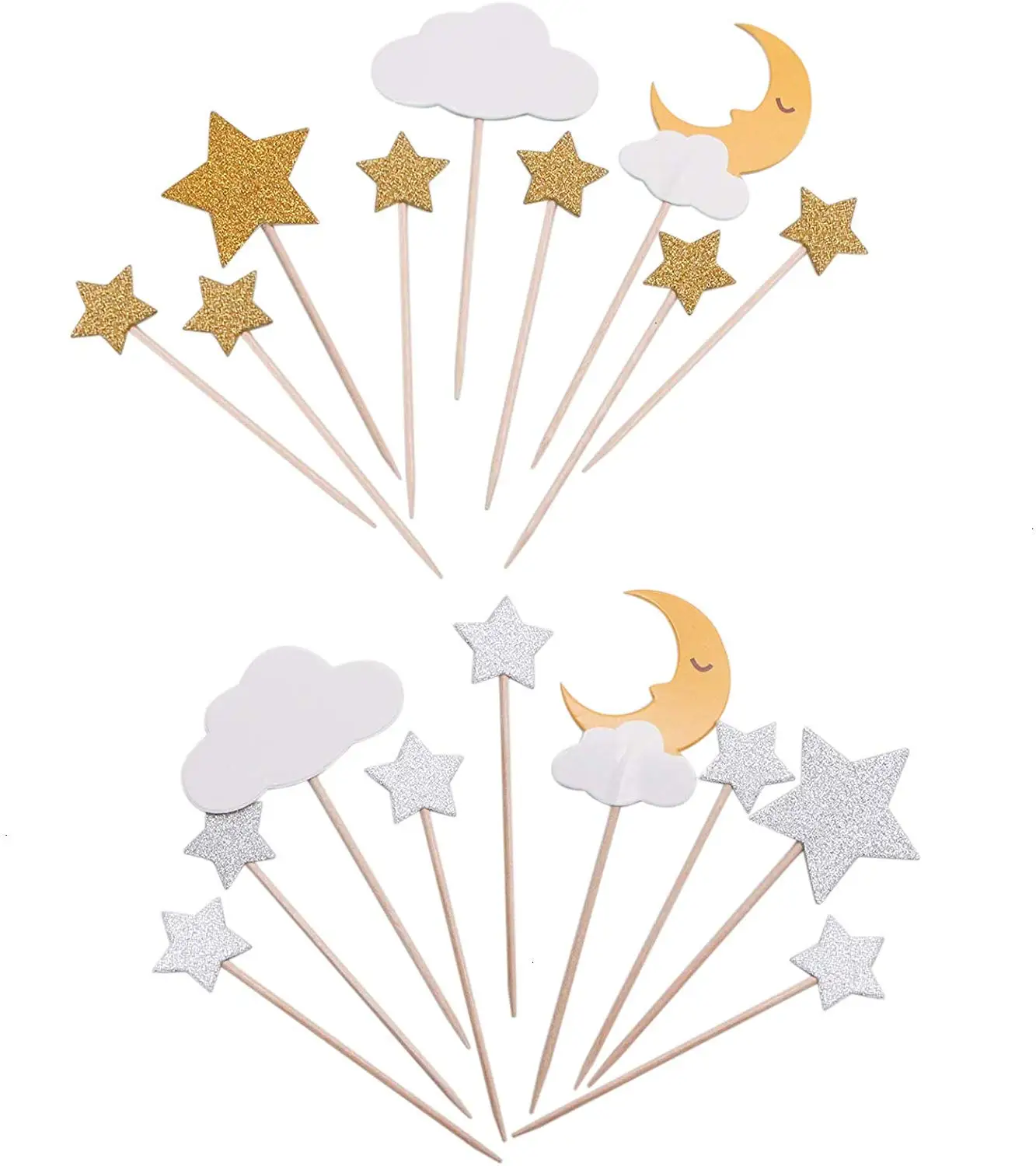 Набор из 4 топов для кексов (каждый цвет имеет 2 комплекта); Набор из 9 предметов, включая 1 облако и 1 Луна и 7 звезд (золото/серебро)