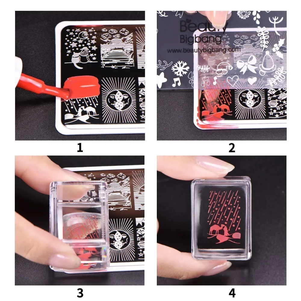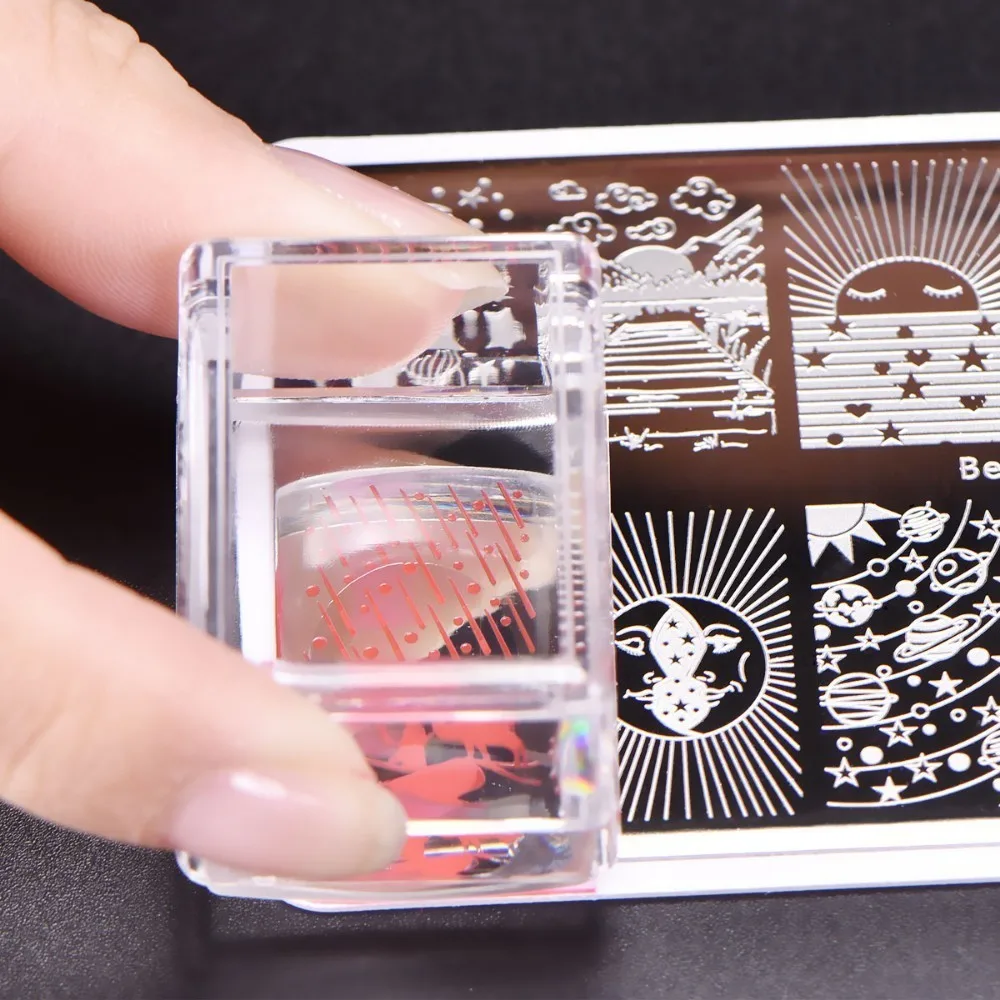 BeautyBigBang 1 набор прямоугольных желейных силиконовых стемперов для ногтей со скребом, прозрачная ручка для штамповки пластин, маникюрный стемпер для ногтей