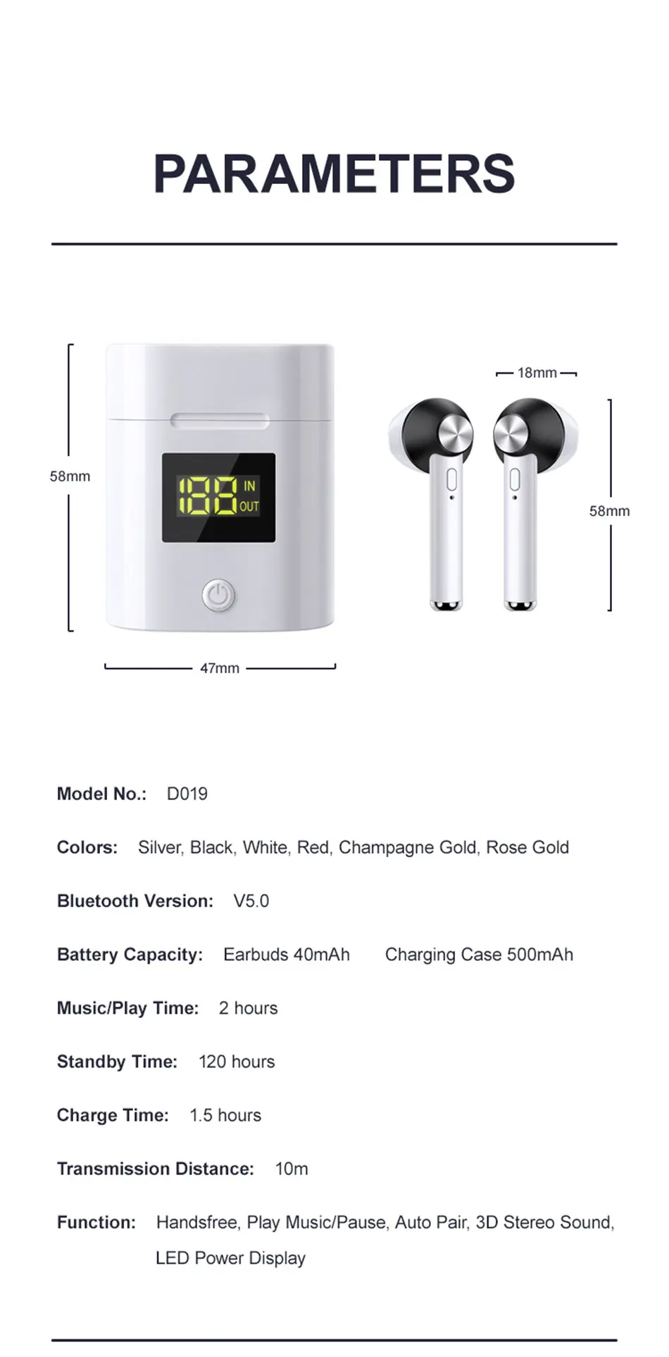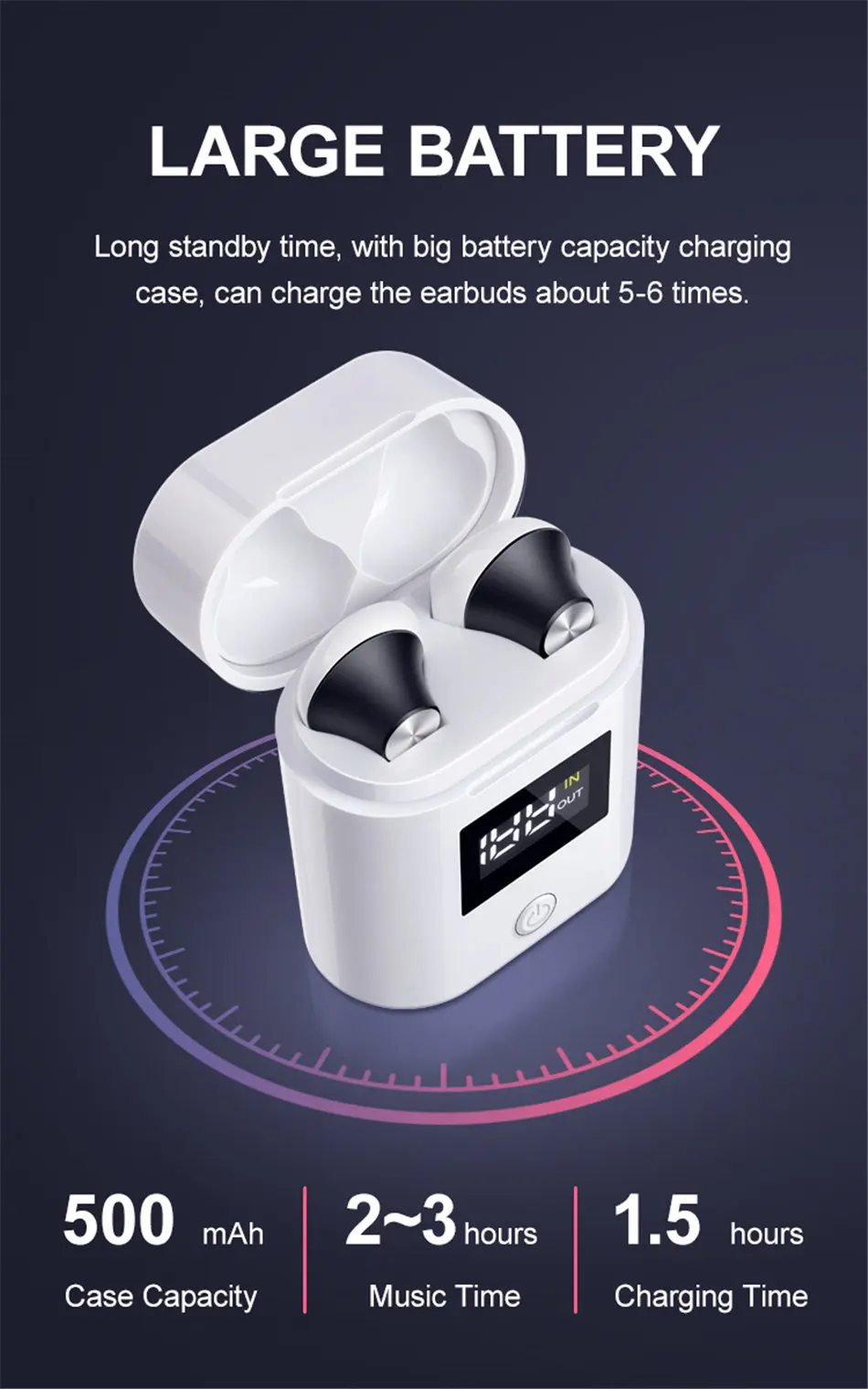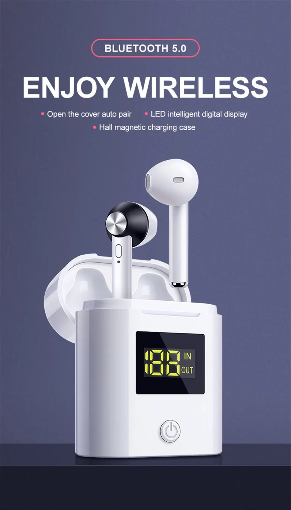 Ottwn D019 V5.0 Bluetooth наушники HD стерео Беспроводные спортивные бас наушники со светодиодным дисплеем питания зарядное устройство чехол для всех телефонов