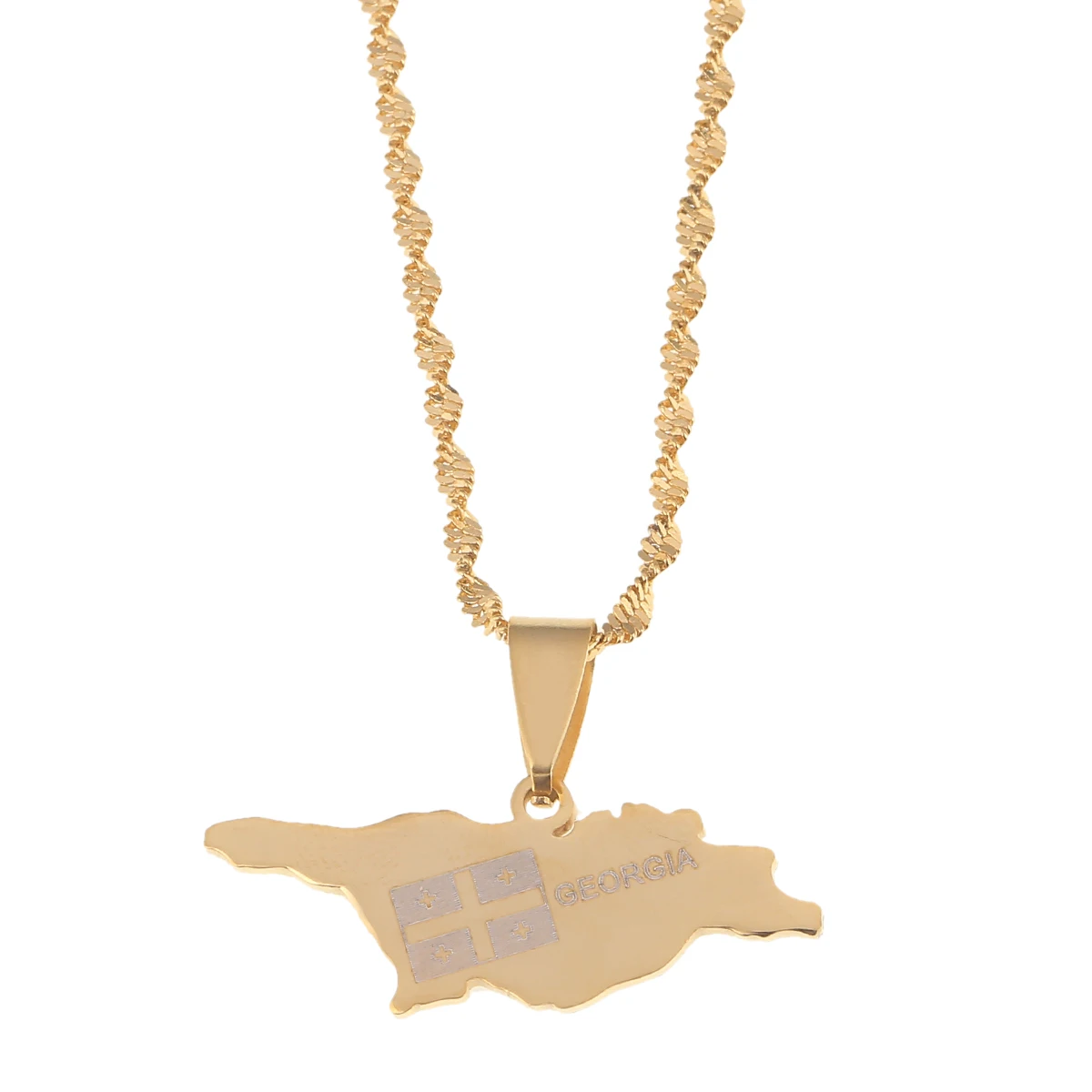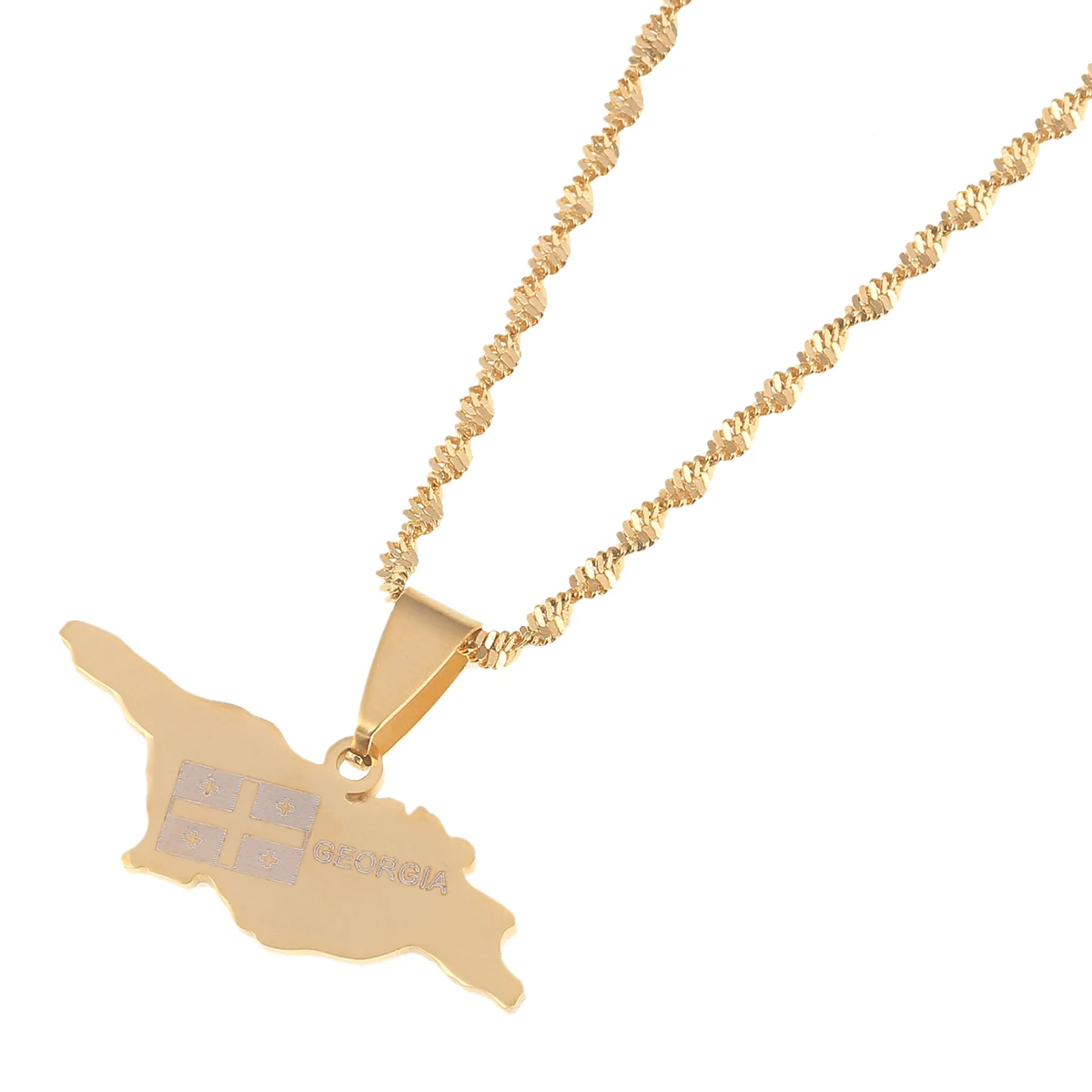 Нержавеющая Сталь модные Грузии карта кулон ожерелье Золото Цвет грузинский карта цепи ювелирные изделия