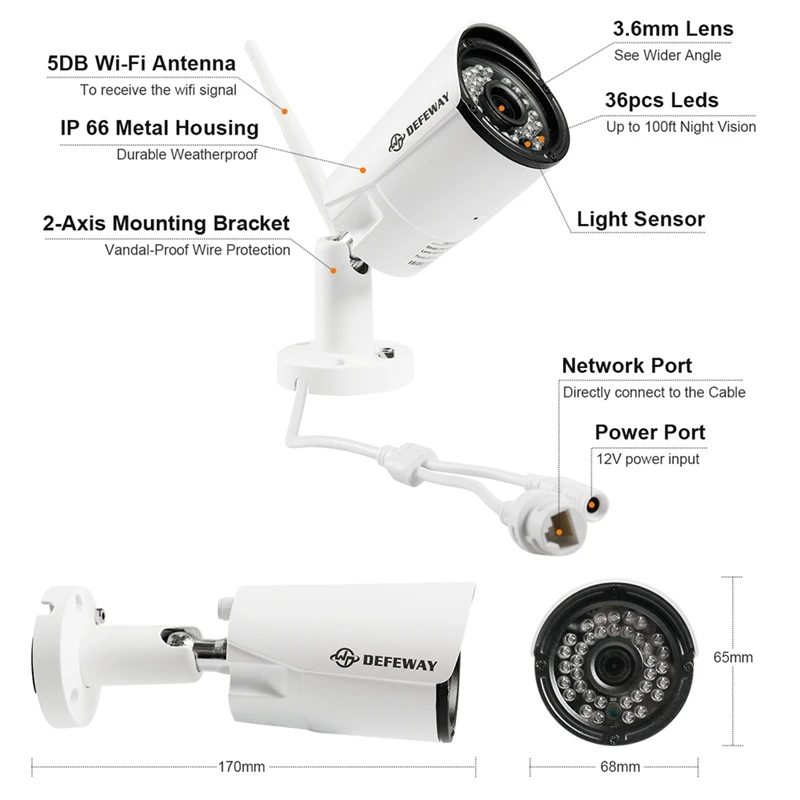 Камера Наружного видеонаблюдения DEFEWAY, инфракрасная беспроводная камера безопасности с защитой от непогоды, 8 каналов, 1080 пикселей, HD, Wi-Fi, NVR, 2,0 МП