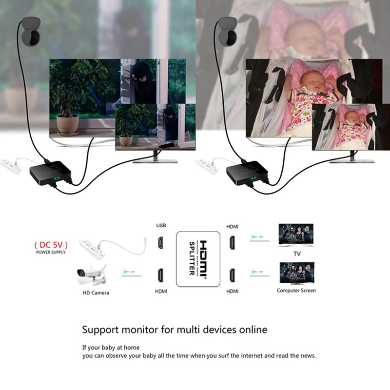 Введение: HDMI сплиттер 1 в 2 выхода, так что HDMI порт для распределения двух HDMI портов высокого разрешения аудио и видео дистрибьютор. Обеспечивает распределение приставок, dvd-плееров, D-VHS-плееров и других HDTV устройств с сигналами HDMI в двустороннем, одновременном, HDMI-выходе.