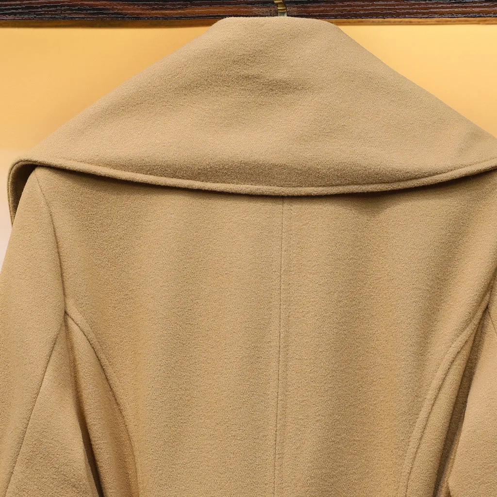 Зимняя женская теплая куртка, шерстяная ветровка с лацканами, модное пальто