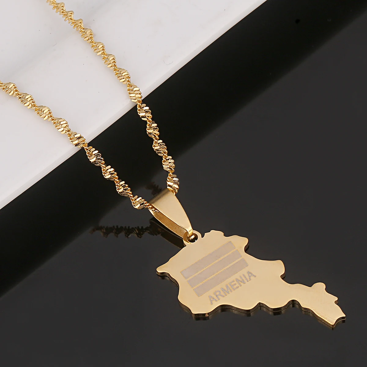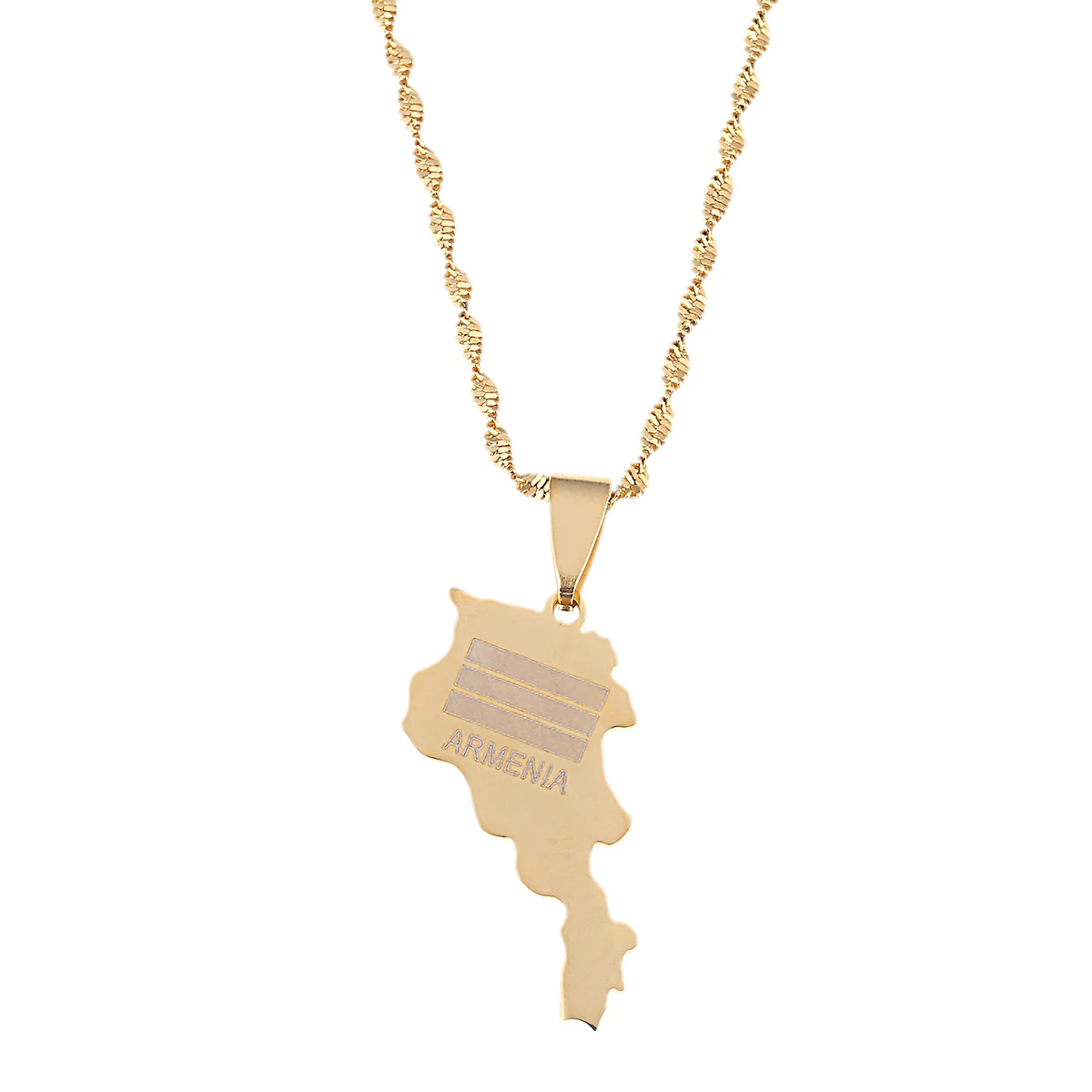 Ожерелье из нержавеющей стали золотого цвета с изображением карты армян, ювелирные изделия