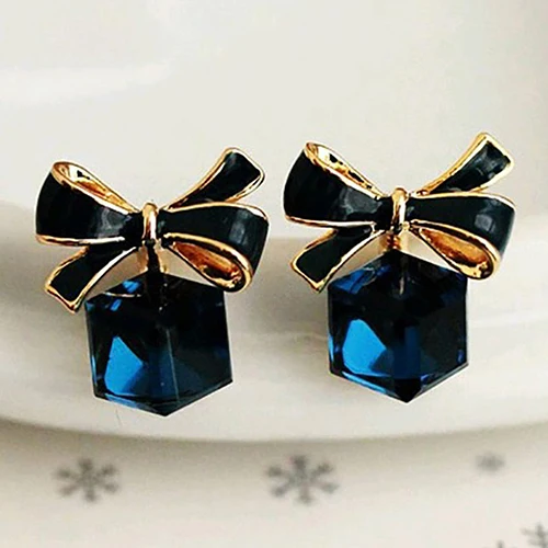 1 пара, женские серьги, модные милые серьги-гвоздики с бантом и кристаллами, стразы, серьги-гвоздики, серьги висячие