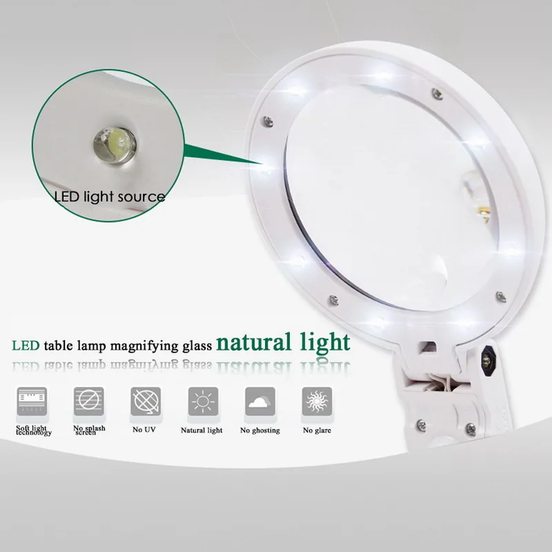 5X 11X увеличительное стекло настольная лампа двойного назначения яркая подставка Нескользящая ручная 8 LED лупа лампа для чтения крафт ремонт