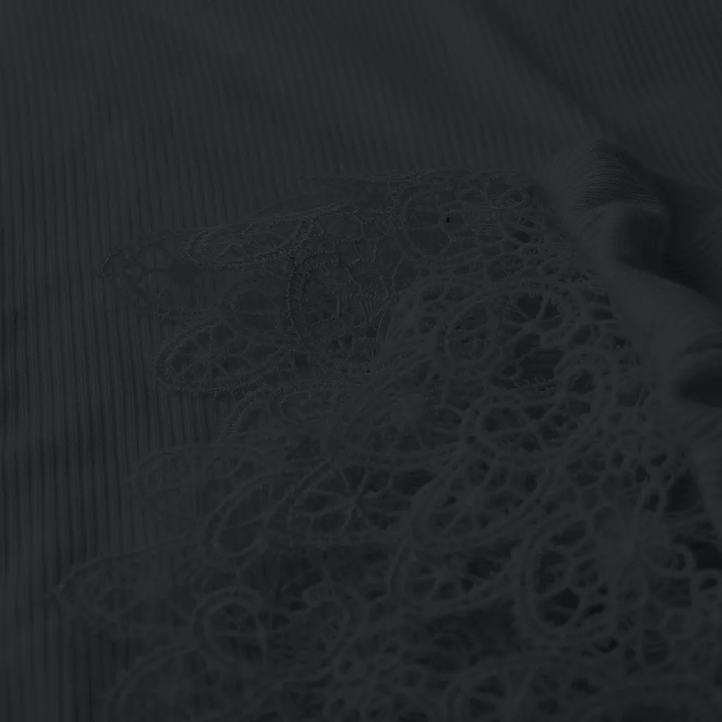 Длинный рукав, мягкий, однотонный иКружево. Хорошо подходит для работы и выходных, одевается вверх или вниз.