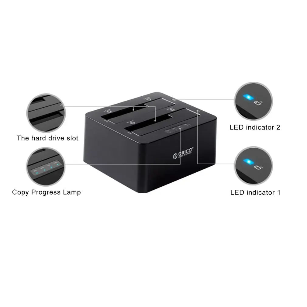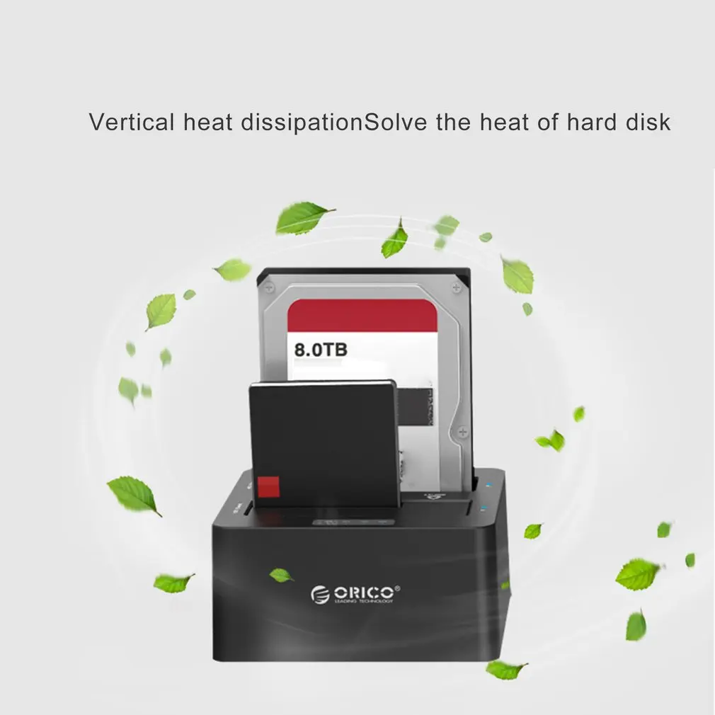 ORICO USB 3,0 для жесткого диска с интерфейсом SATA чехол Dual Bay внешний жесткий диск Док-станция для 2,5 3,5 HDD/SSD клон, Дубликатор Функция