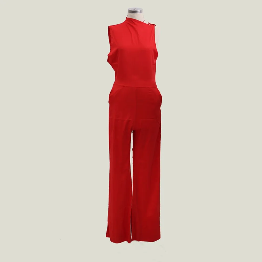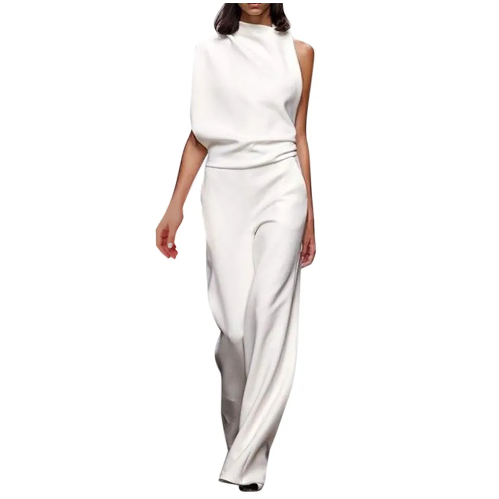 Модный женский OL Элегантный Простой комбинезон на одно плечо с широкими штанинами