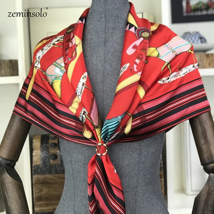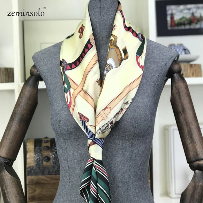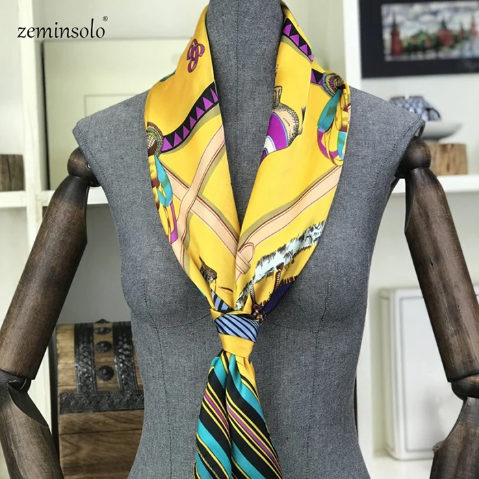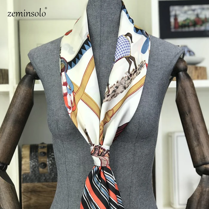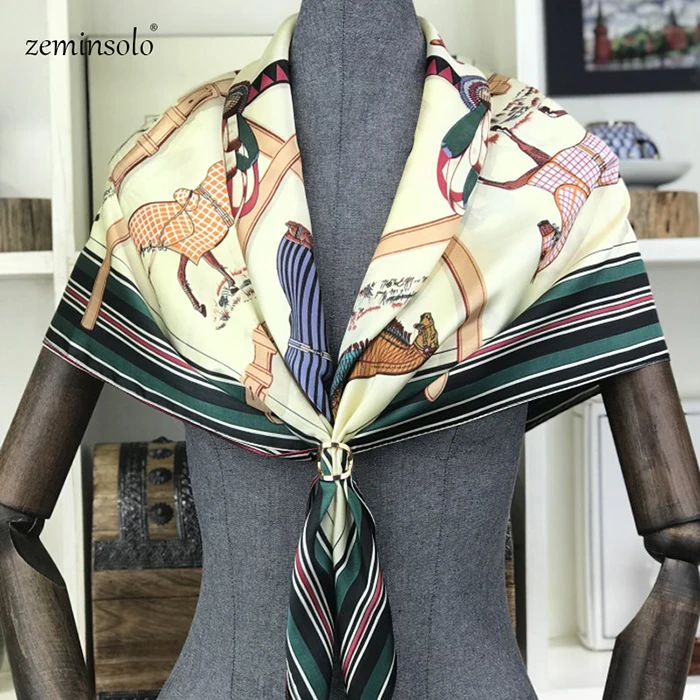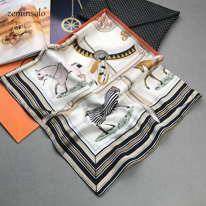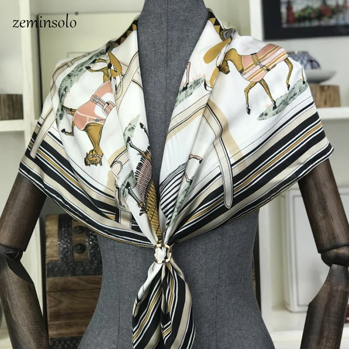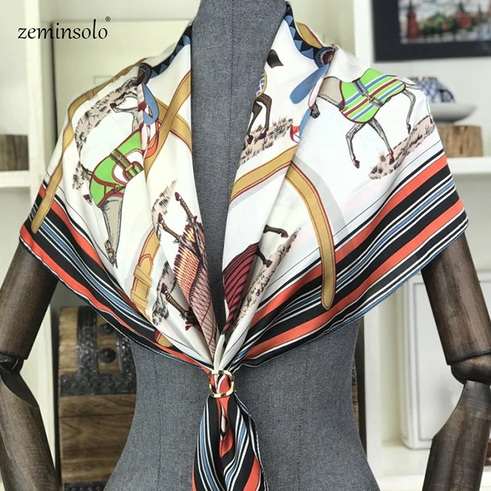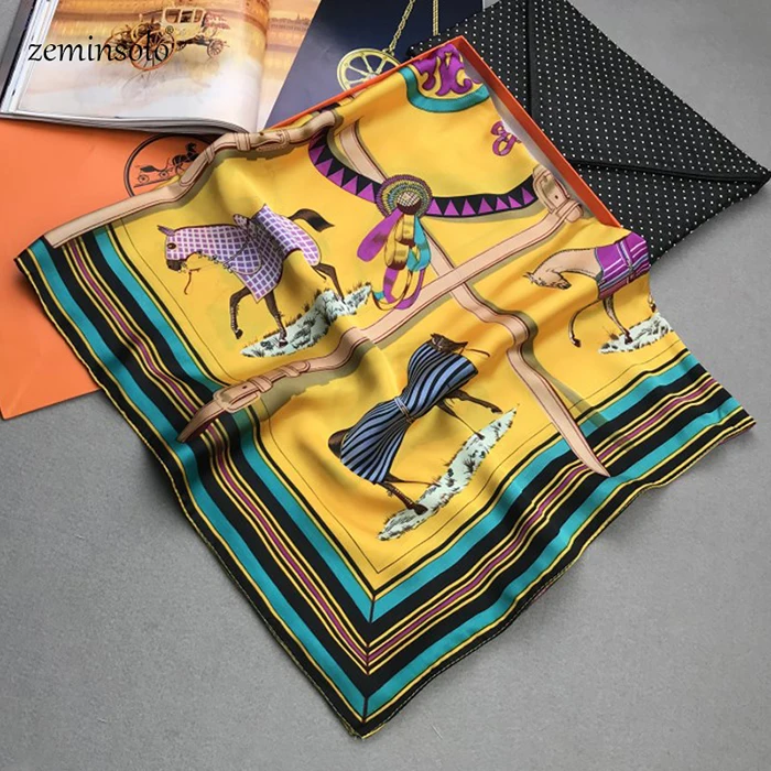 Женские шелковые шарфы, квадратный шарф, Дамский роскошный бренд 90*90 см, летние пляжные шали, бандана, конский шарф, шарфы, хиджаб для женщин