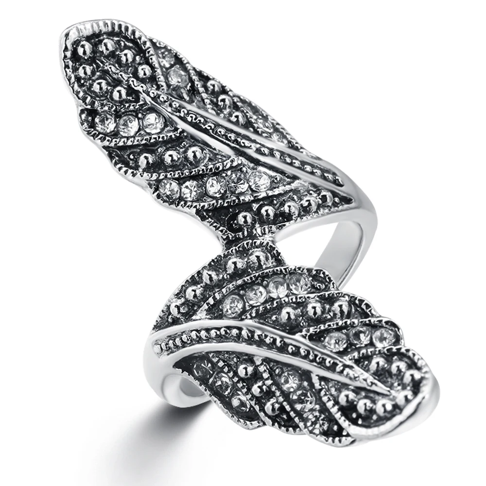 Кольцо в форме листа в стиле ретро, Инкрустированный белый цирконий, кольцо, индивидуальная симметрия, классические ювелирные аксессуары, Женские Простые аксессуары
