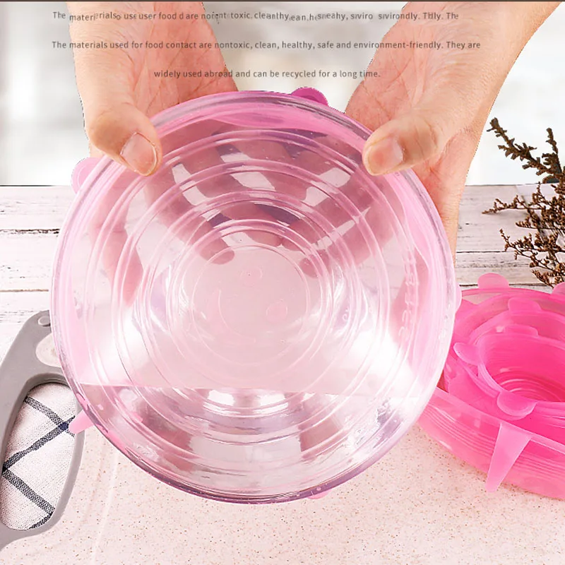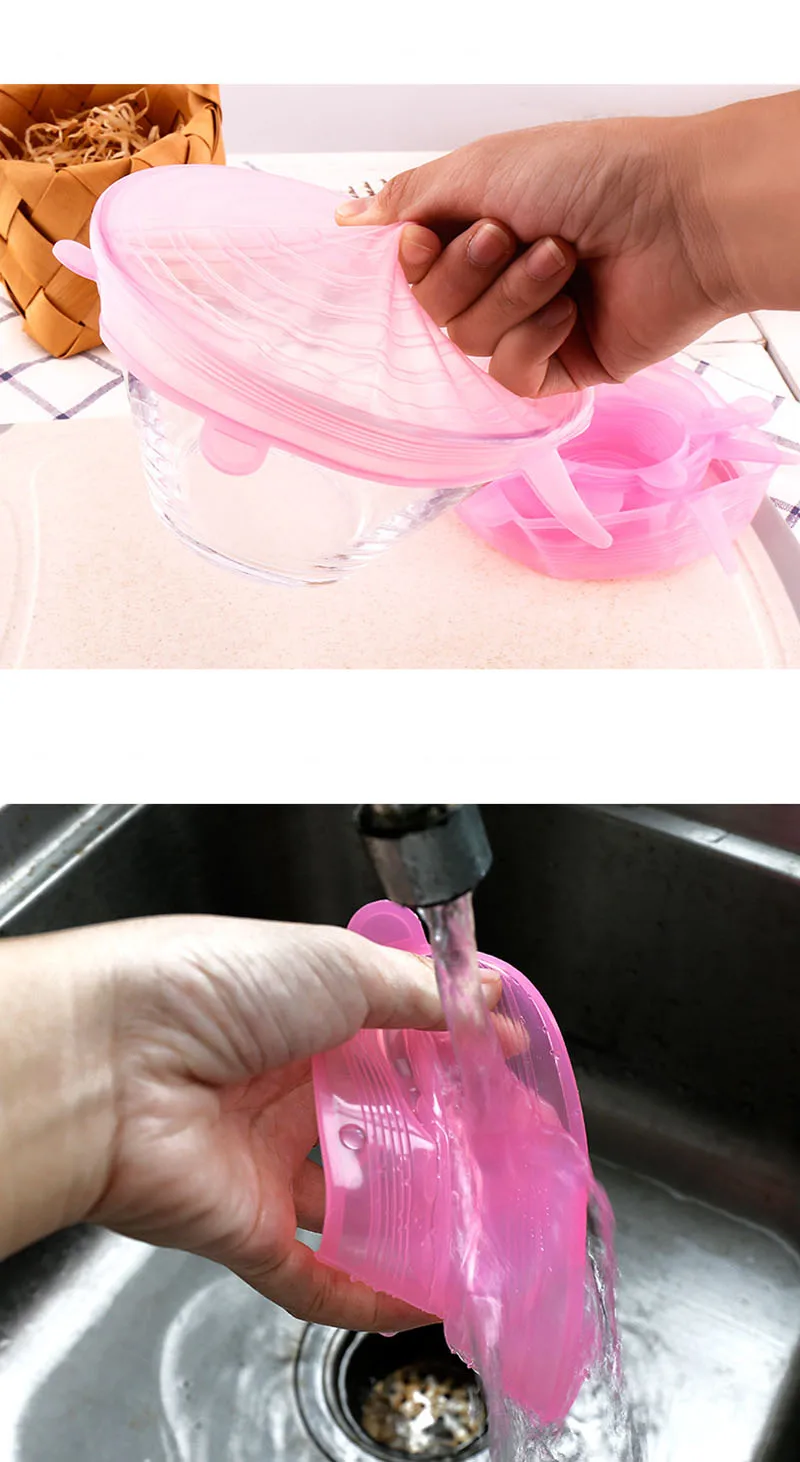 Описание: Тип изделия: силиконовые крышки Материал: силикон Цвет: розовый/желтый/прозрачный Размер: как на фотографии Особенности: Силиконовые крышки для хранения пищи можно использовать для покрытия приготовленной пищи, фруктов, салатов, соусов, а также напитков, таких как кофе, чай, сок и многое другое.