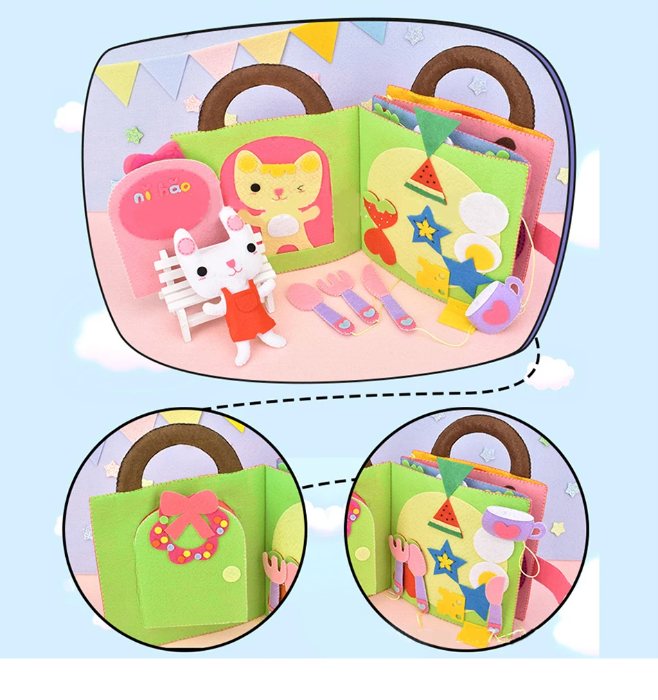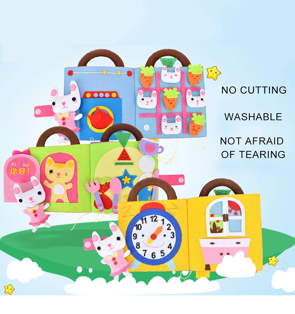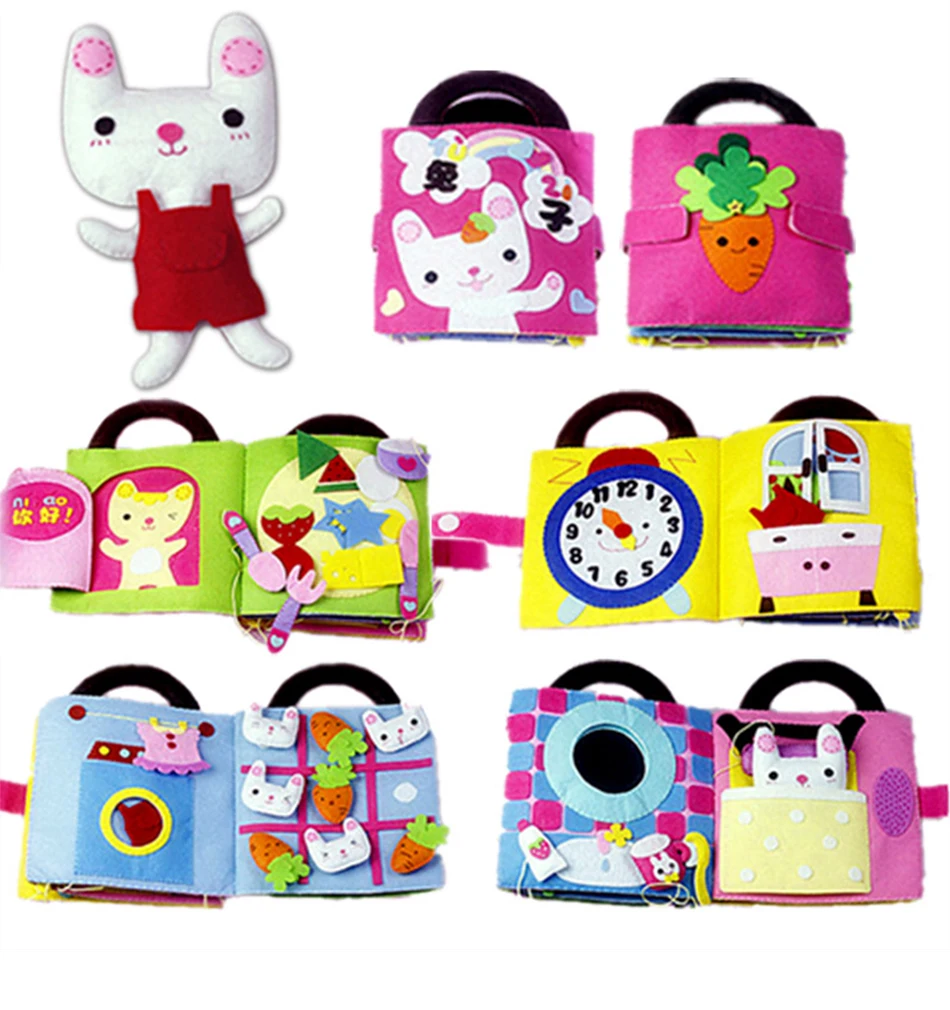 Детская тканевая книга из нетканого материала для рукоделия с кроликом, ручная книга для детей, воображение, раннее образование, книги для чтения, для развития детей