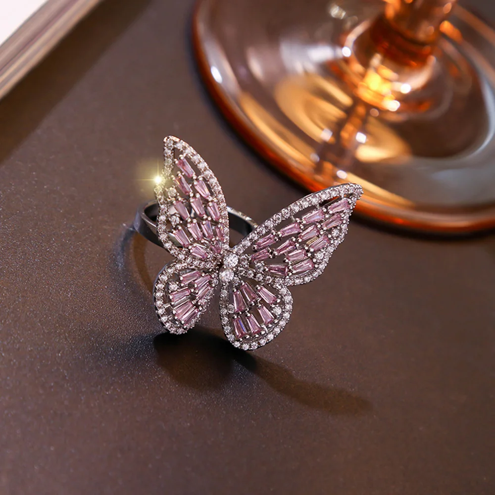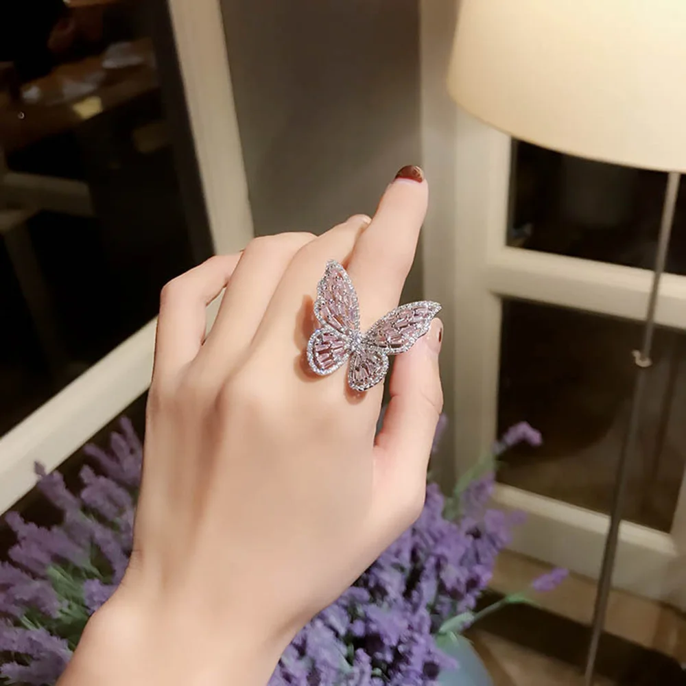 Новое роскошное супер сказочное Открытое кольцо с бабочкой, роскошное кольцо с кристаллами, регулируемое свадебное украшение для вечеринки, подарок