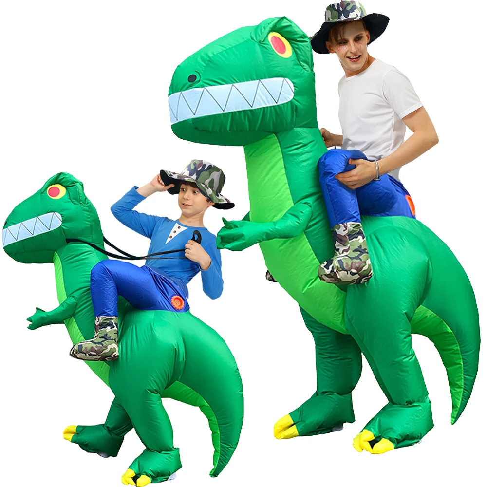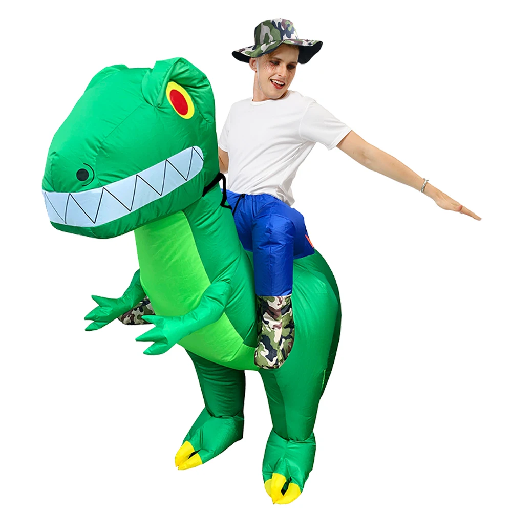 Хэллоуин динозавр надувные костюмы езда зеленый динозавр Косплей Костюм Забавный карнавал дети взрослый ходьба T-Rex Blow Up Одежда