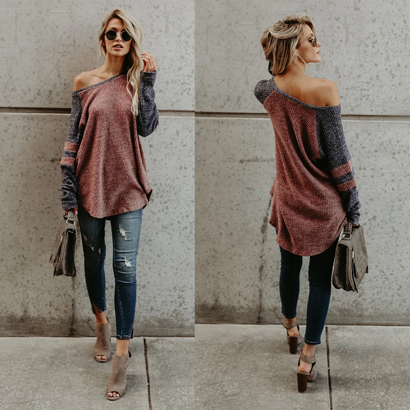 Женский с открытыми плечами негабаритный полосатый мешковатый вязаный джемпер