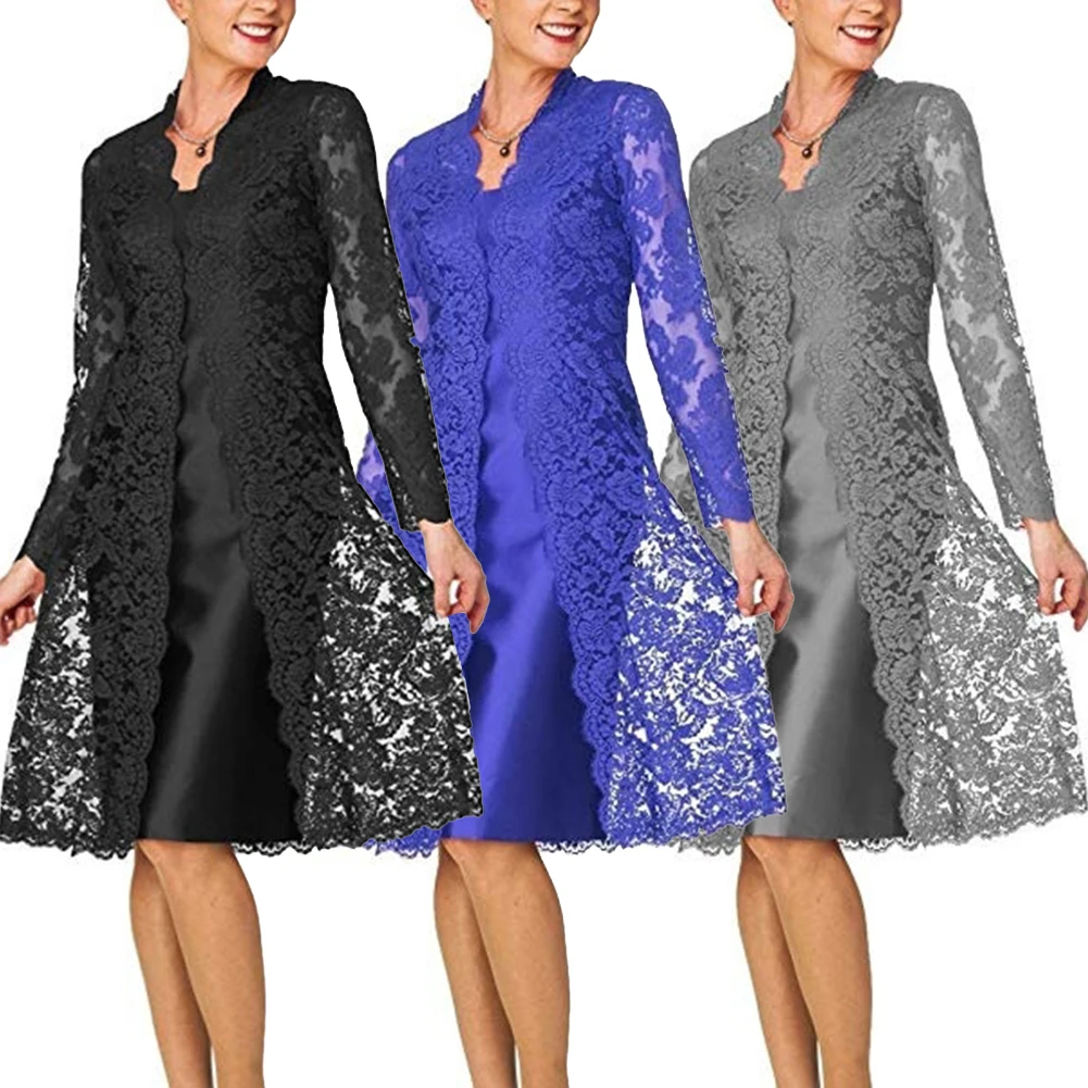 Комплект из 2 предметов; Модные свадебные вечерние платья средней длины для мамы и невесты; Комплект с кружевным пальто