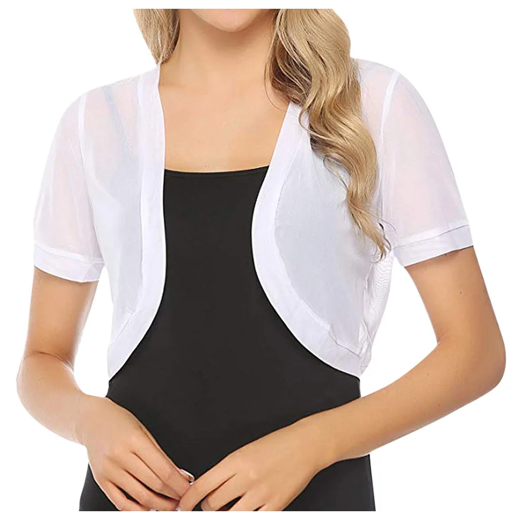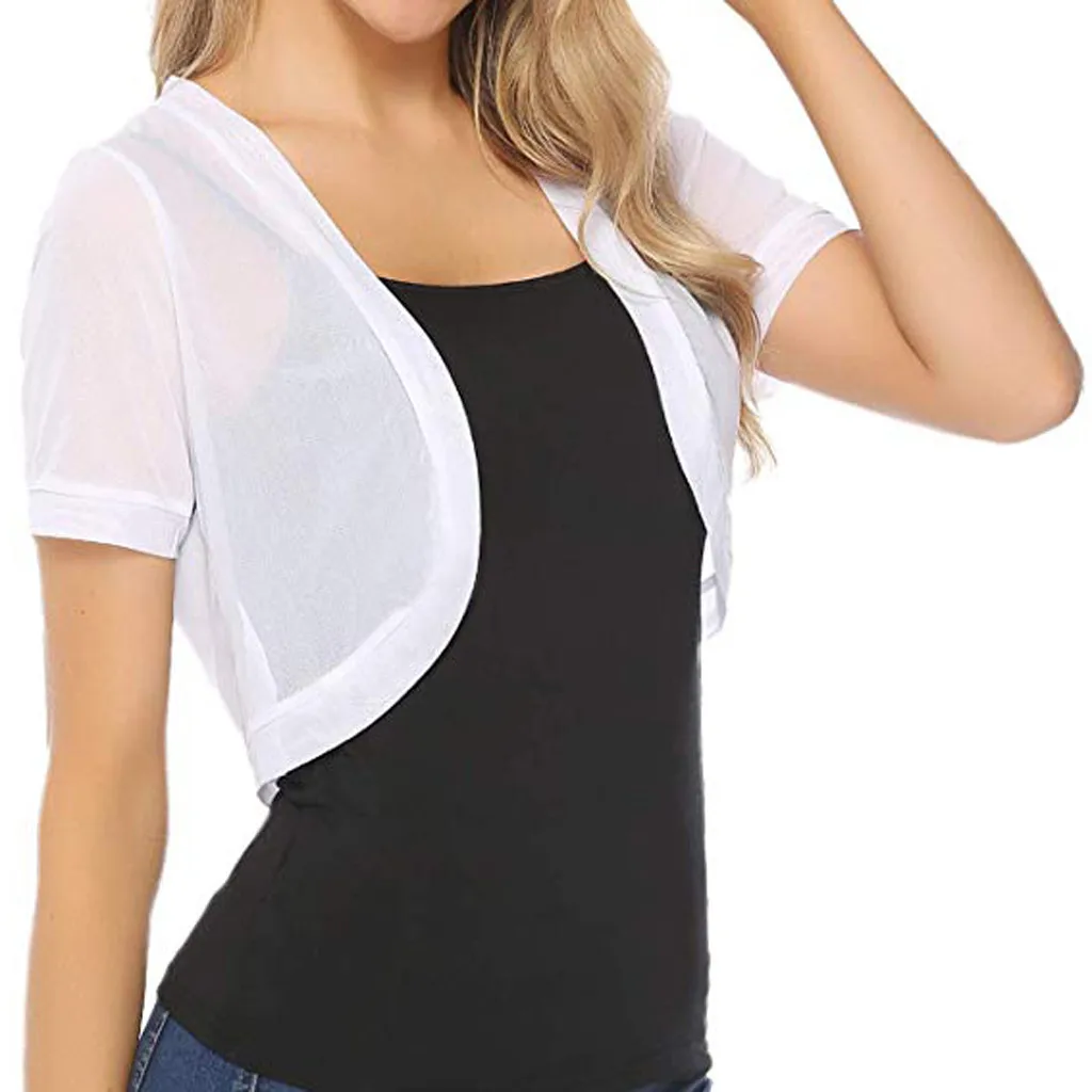 1. Особенности: модные женские, шифон, короткий рукав, болеро с открытым передом, кардиган, топы.