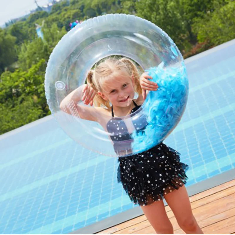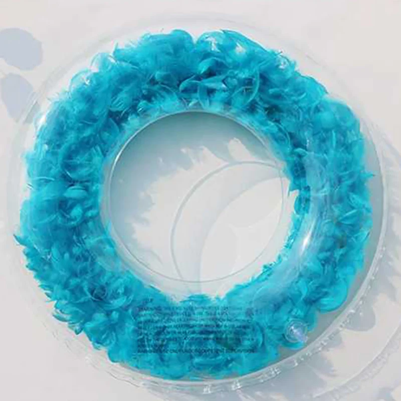 Плавательный круг, наполненный перьями, имеет красивый внешний вид, который красив и интересен, и может эффективно привлечь внимание людей.