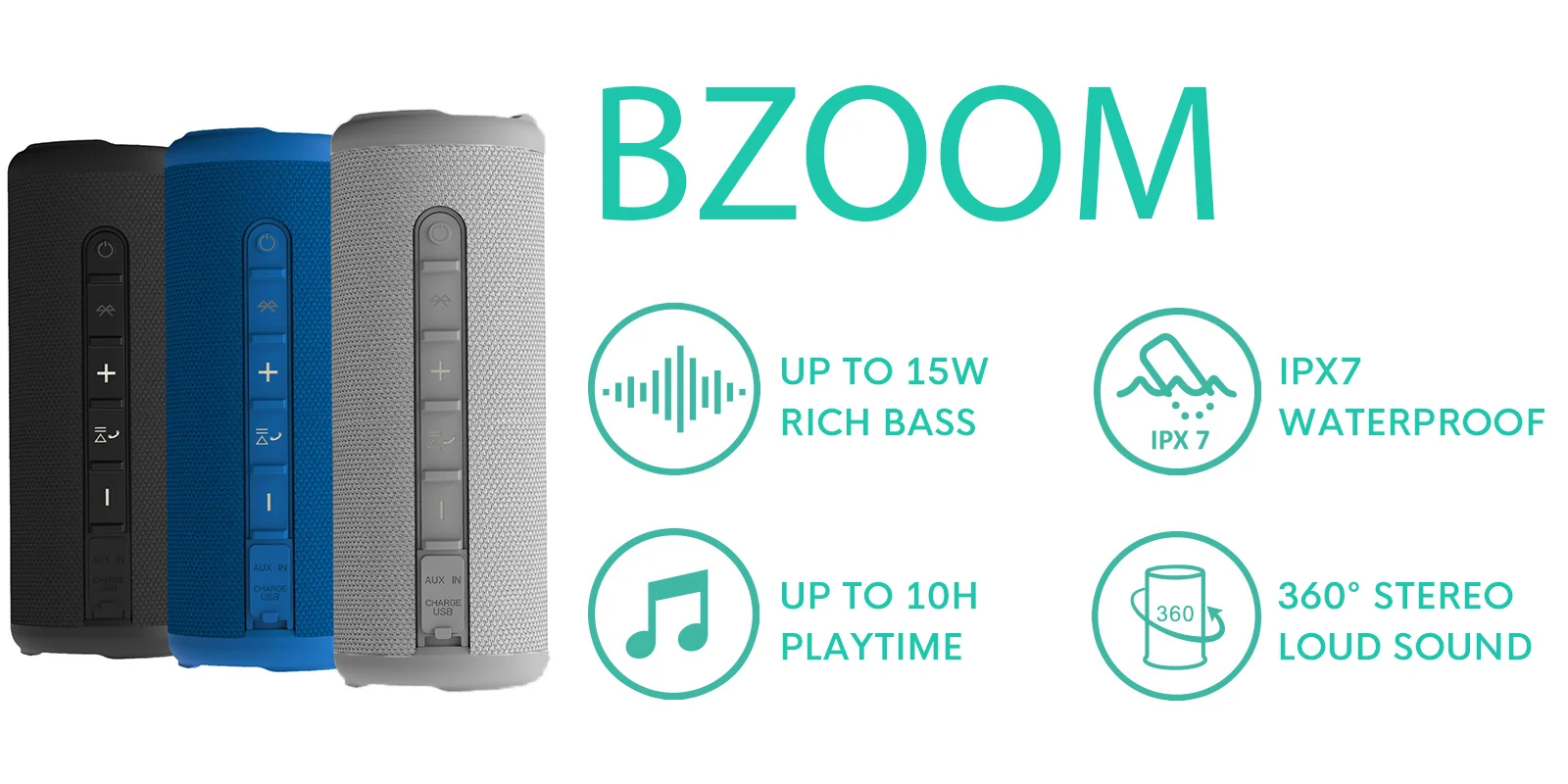 BZOOM разработан с мощными драйверами с басовыми излучателями для стерео 360 °, обеспечивая наполнение комнаты и захватывающий звук, почувствуйте, что вы находитесь в центре концерта.