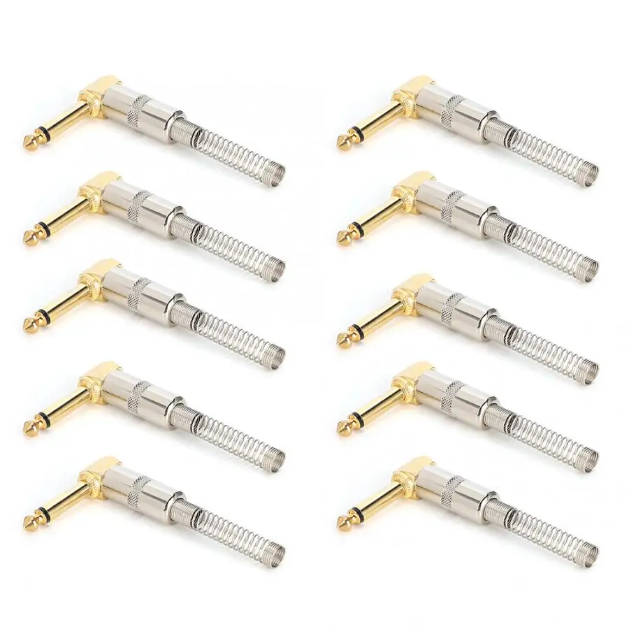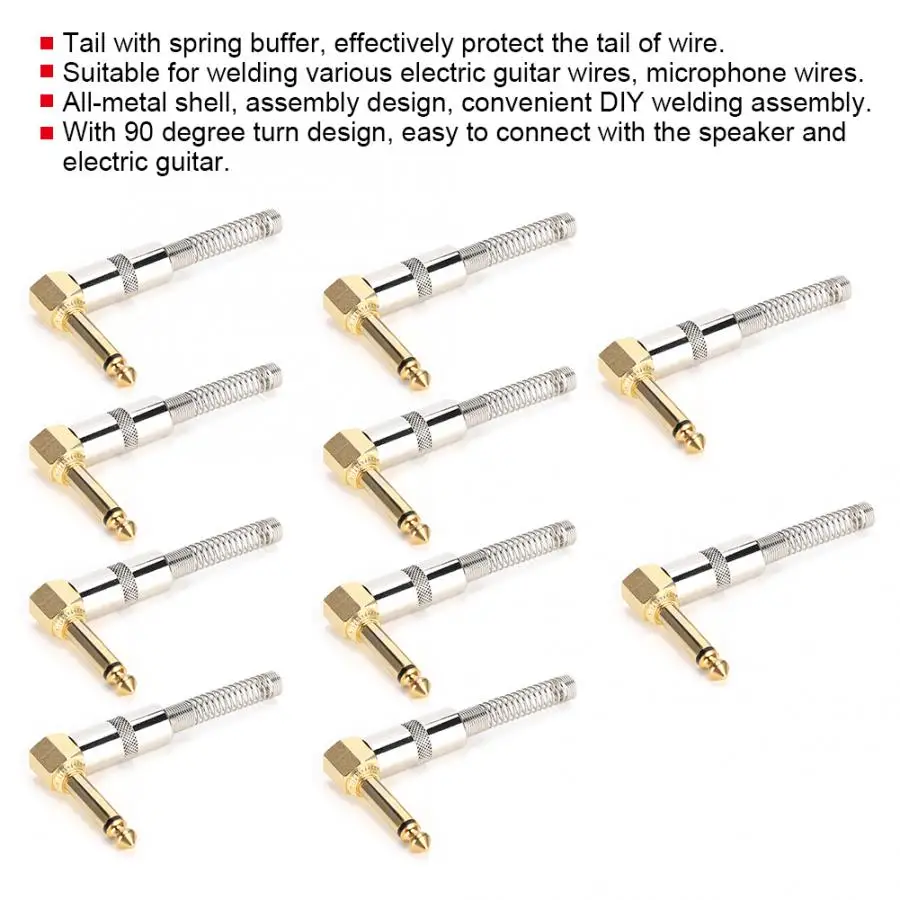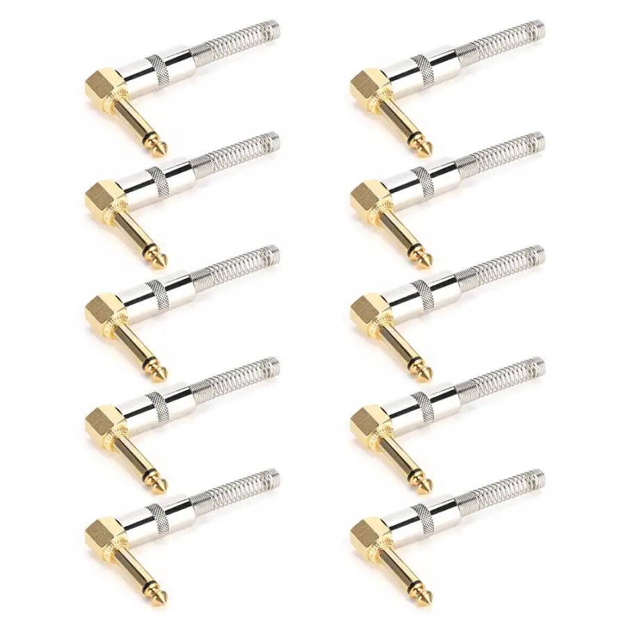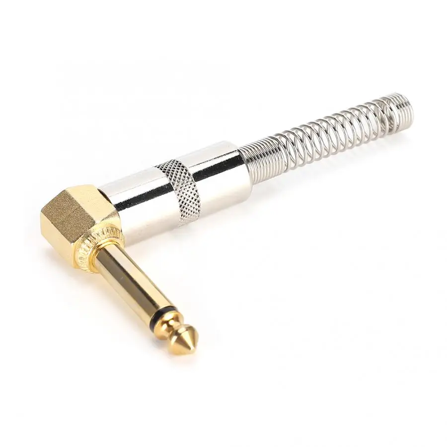 Позолоченный 90 градусов кривой моно 6,35 мм Мужской электрогитара микрофонный кабель сварочный «сделай сам» штекер