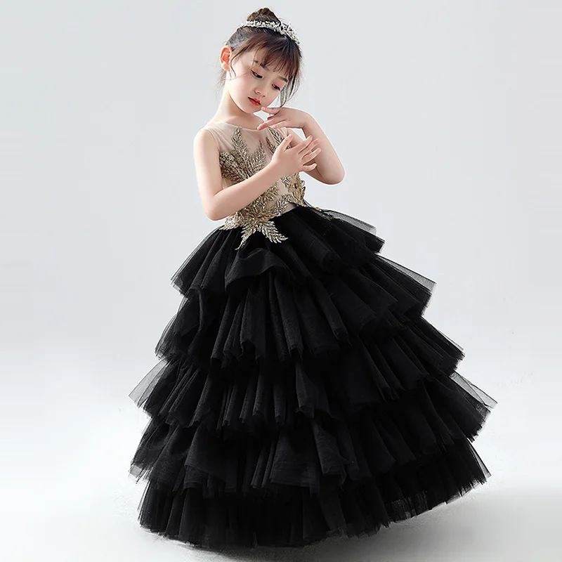 Платье принцессы для девочек свадебное платье для девочек с аппликацией цвета шампанского, со съемным шлейфом, с цветочным узором, B006, открытое детское платье для причастия
