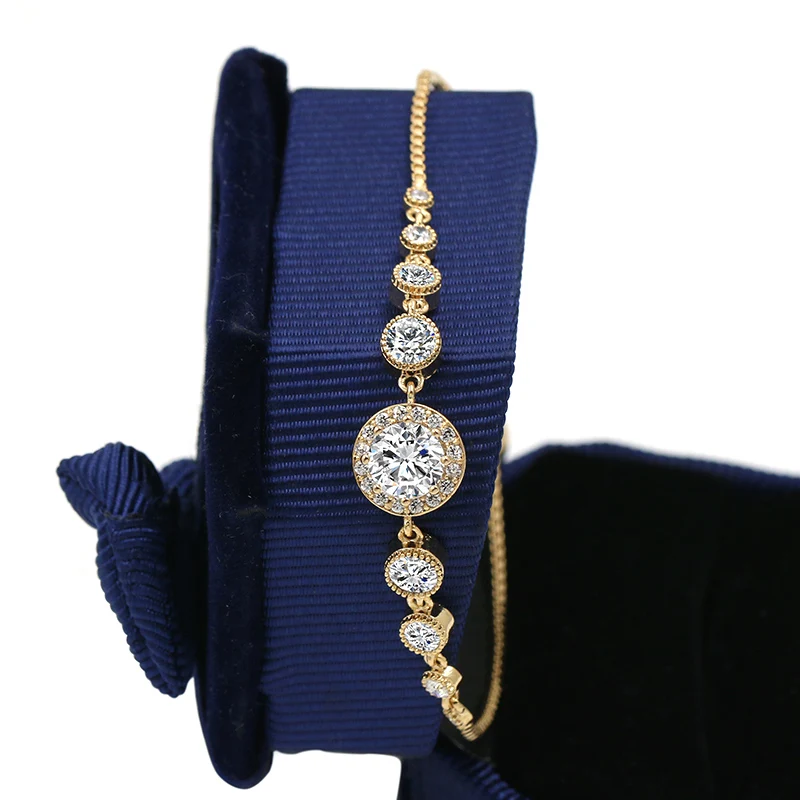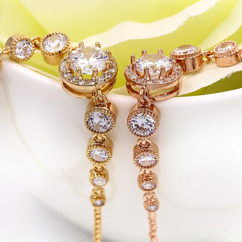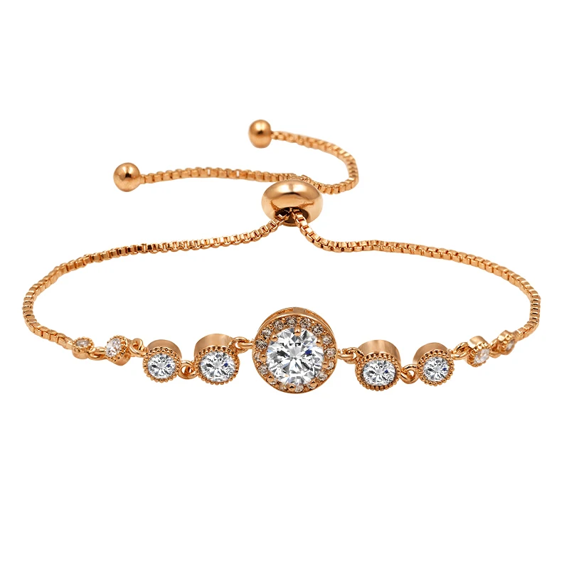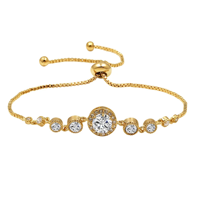 MIEG New 2020 Fashion Gold Color Round CZ Cubic Zirconia Charm Bracelets Bangle For Women Girl Jewelry Gift Size:Adjustable 10cm To 26cm