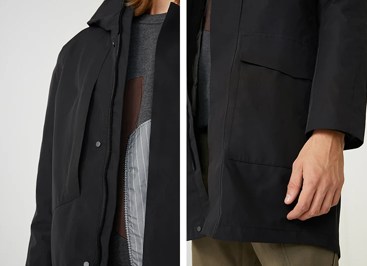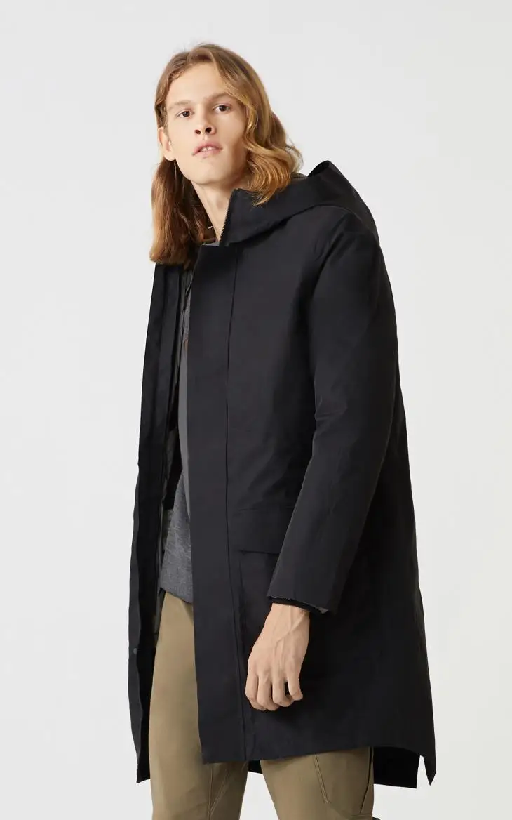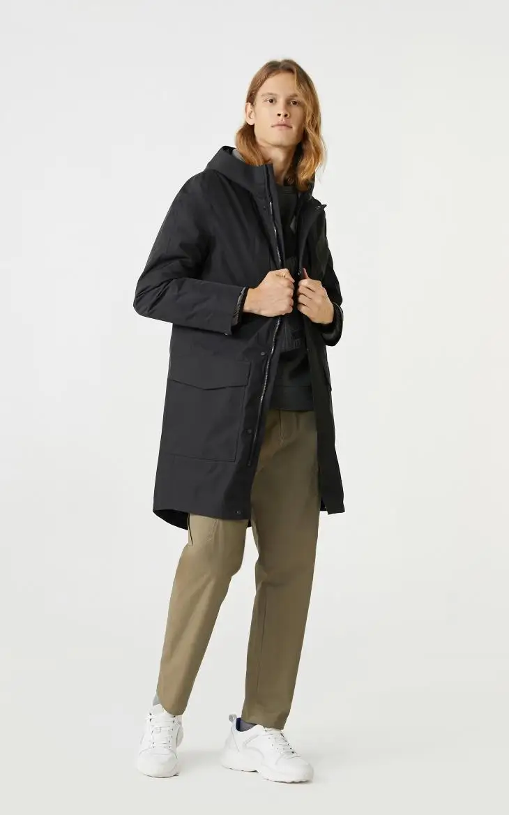Мужская куртка-бомбер с капюшоном черная стеганая куртка составного кроя