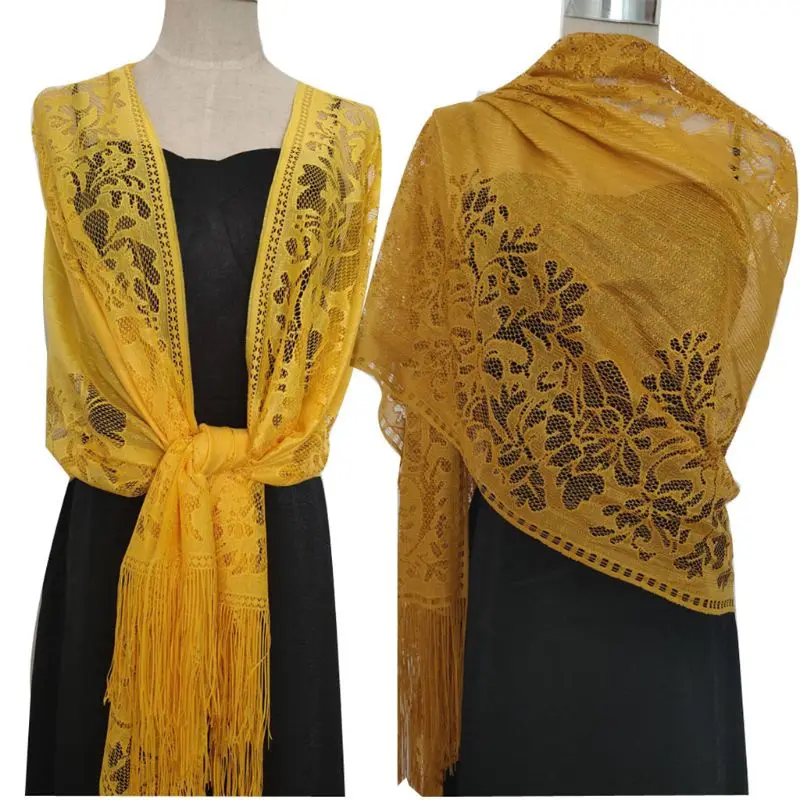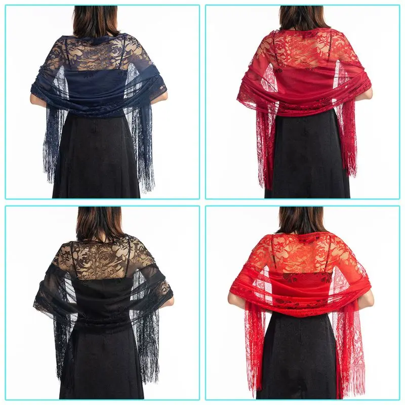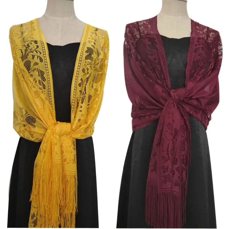 185x63 см женский 1920-х шарф Обертывания выдалбливают крючком цветочные кружева бахромой Свадебная накидка вечерняя винтажная шаль