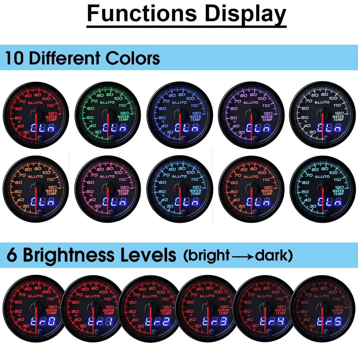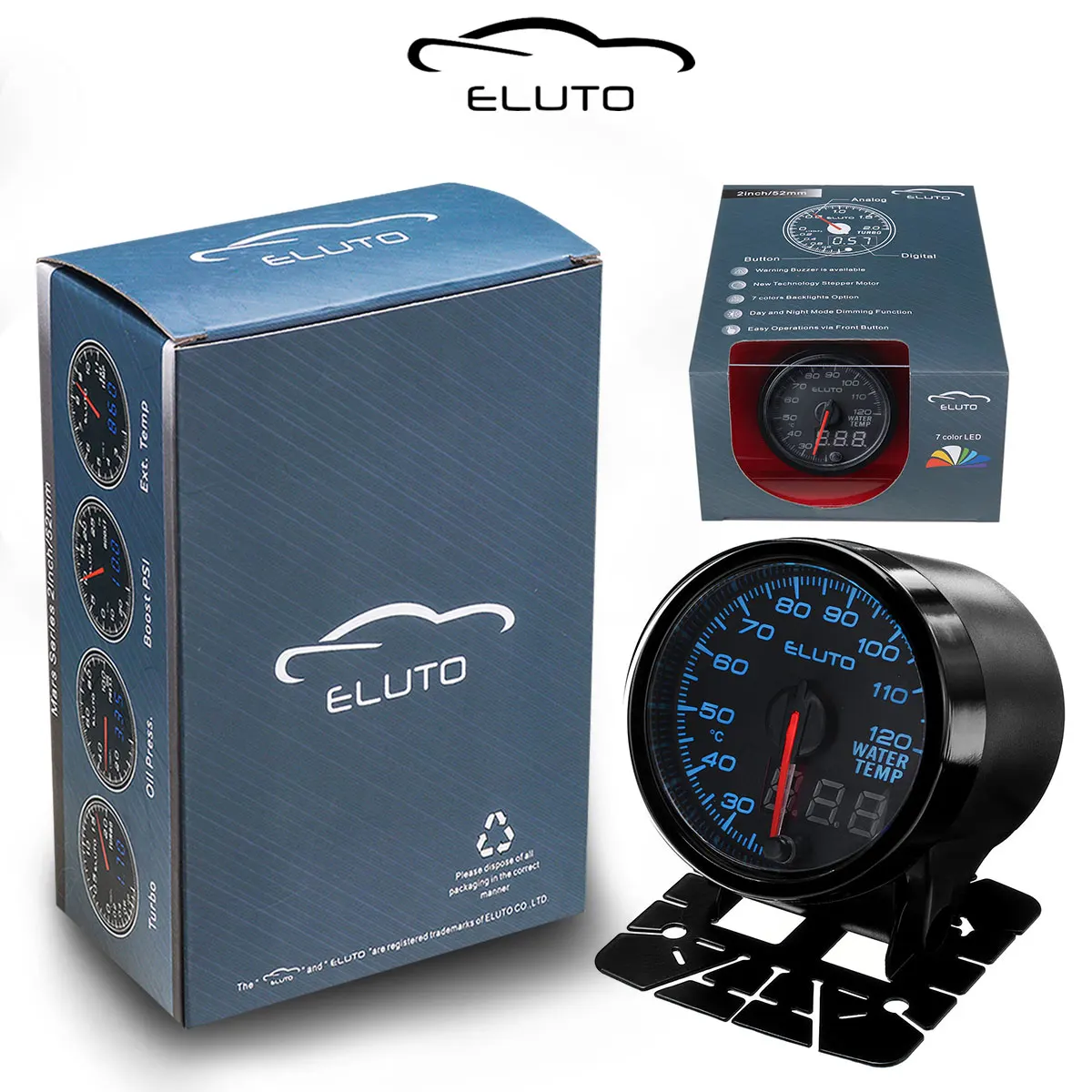 | Универсальный датчик температуры воды Eluto, 2 дюйма, 52 мм, цифровой измеритель температуры воды с 10-цветным светодиодным дисплеем, автомобильный измеритель |