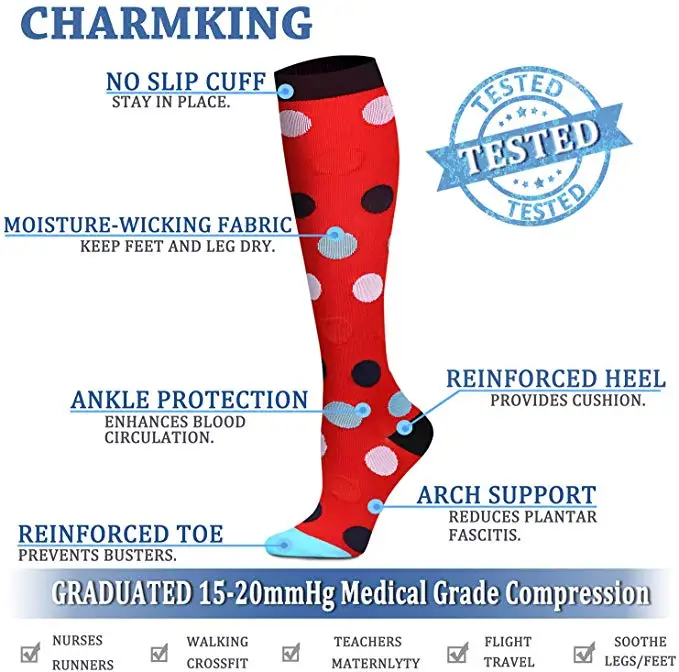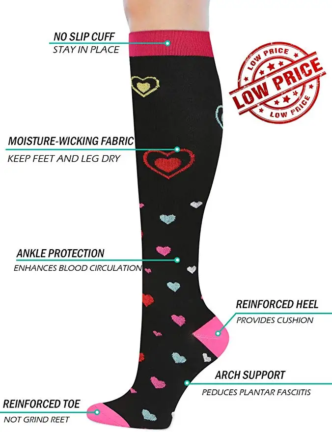 Мужские и женские Компрессионные носки, подходят для спорта, анти усталость, колено, облегчение боли, высокие носки, черные Компрессионные носки для мужчин, спортивные носки