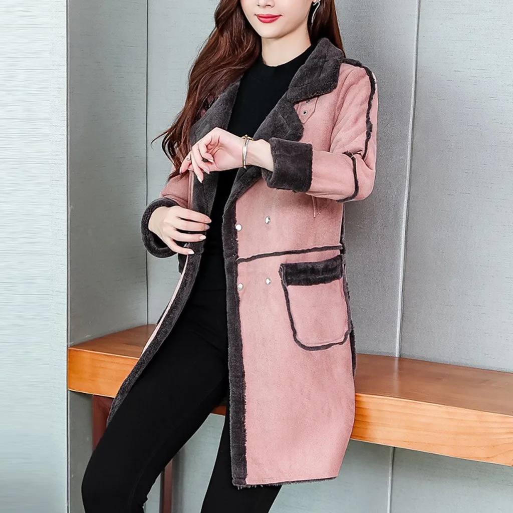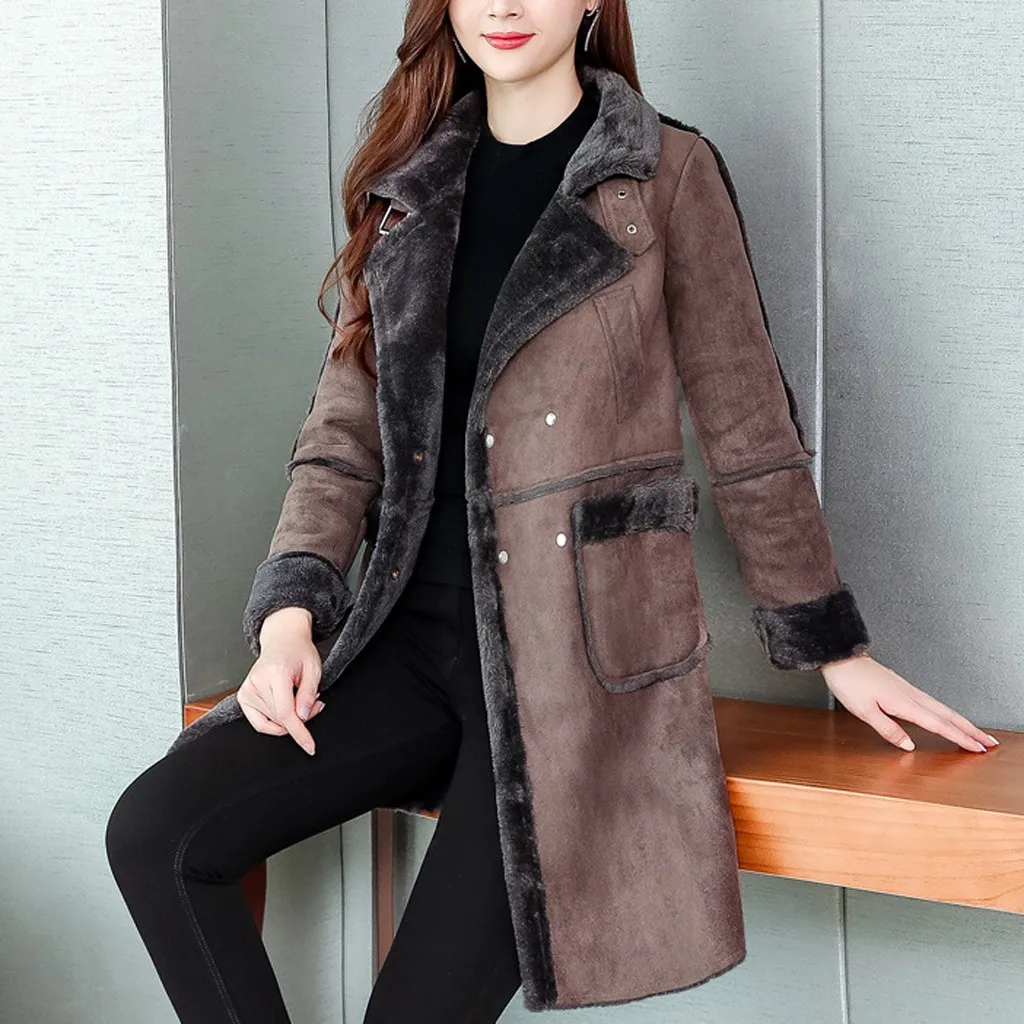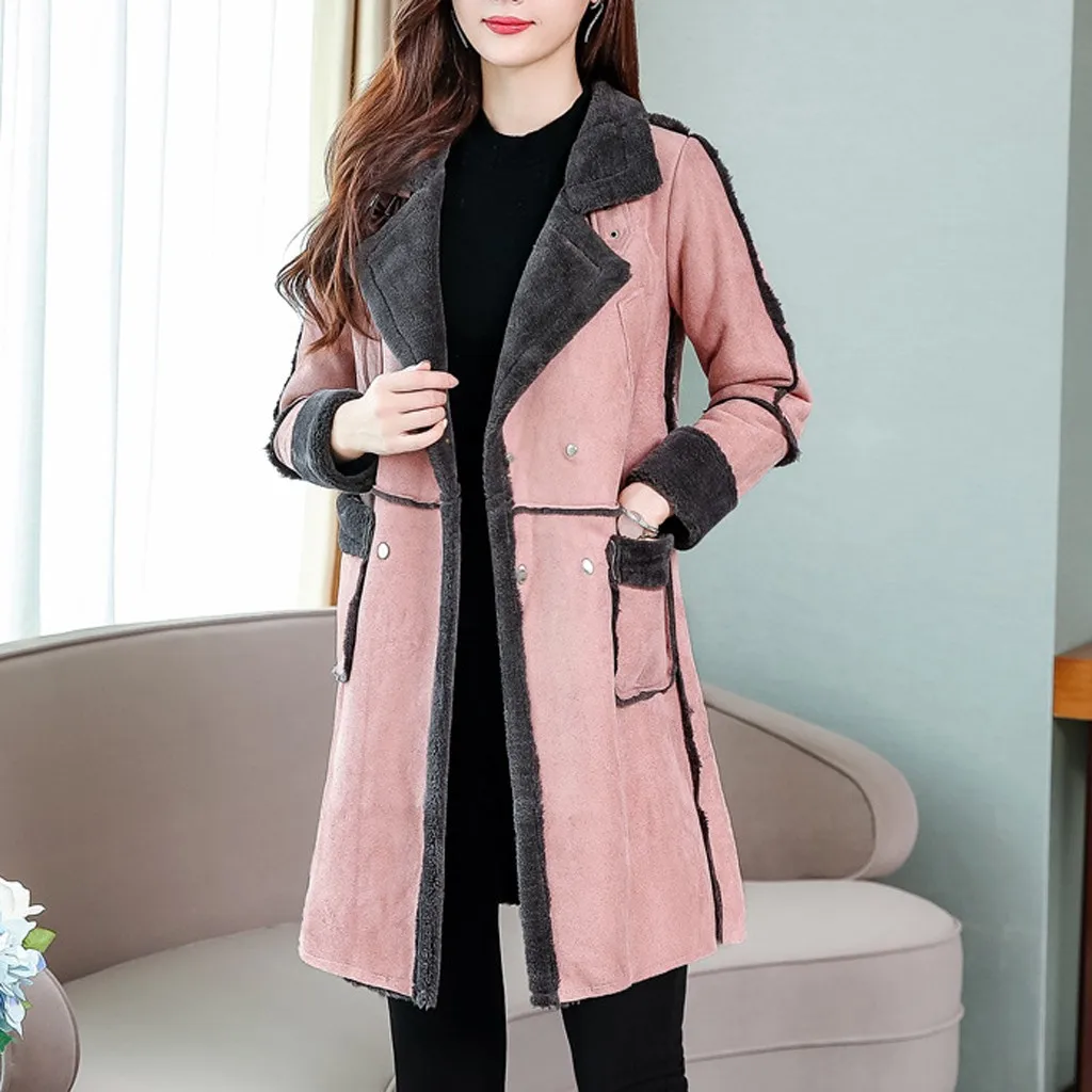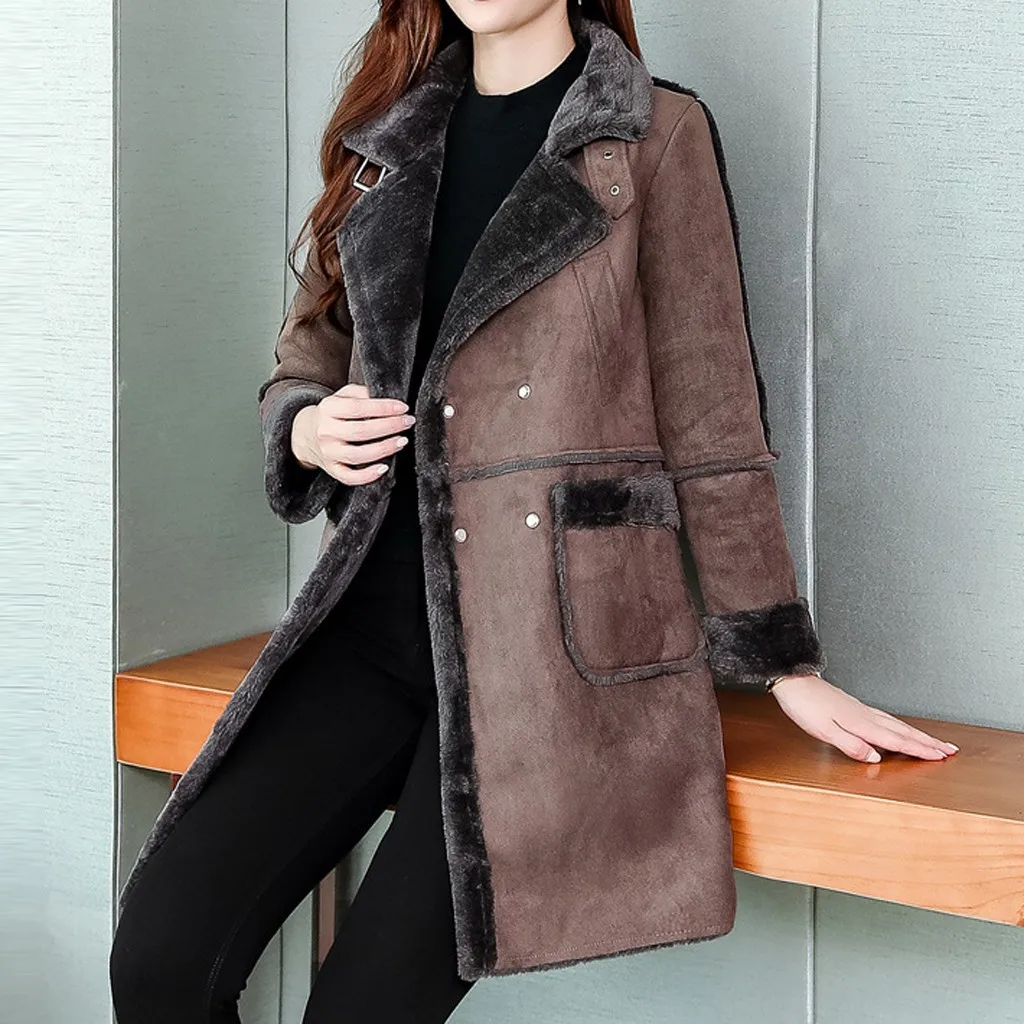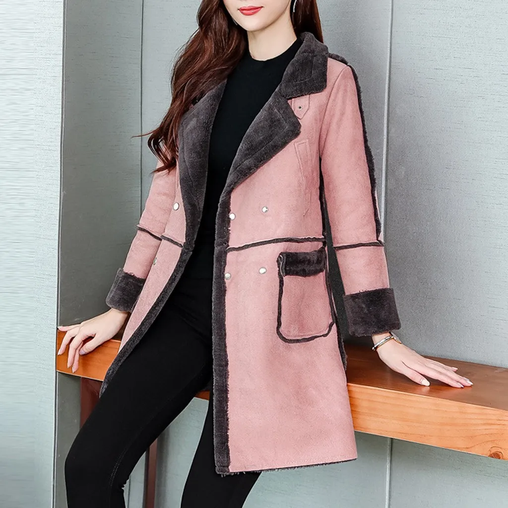 Женская зимняя офисная куртка с отворотом и длинным рукавом из плотного бархата