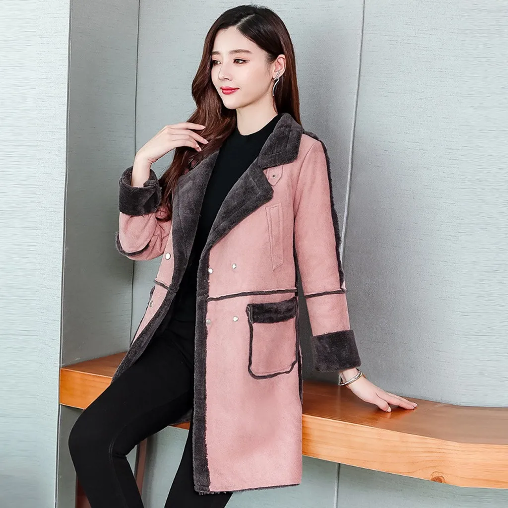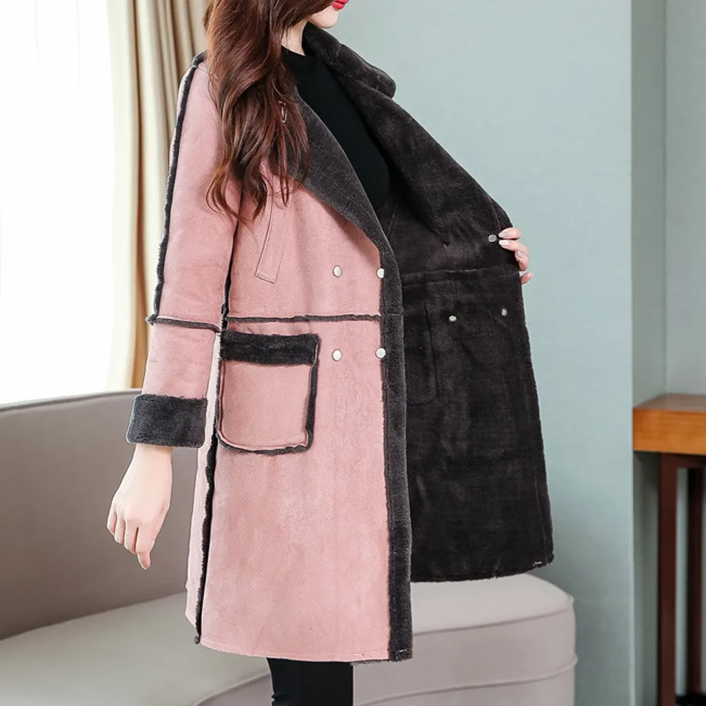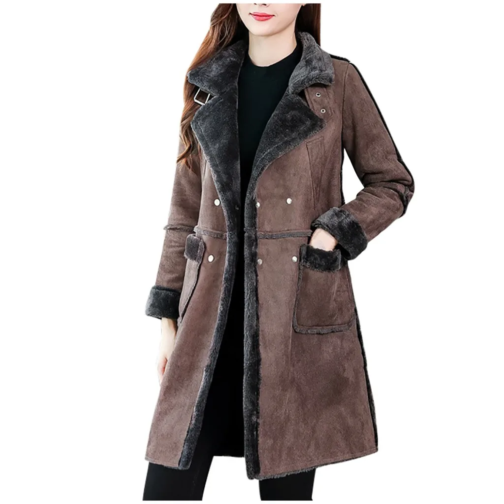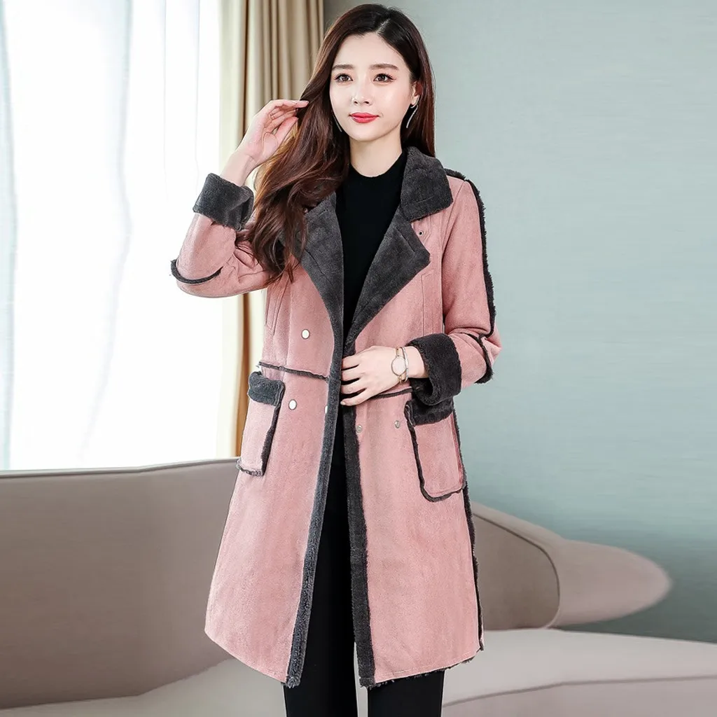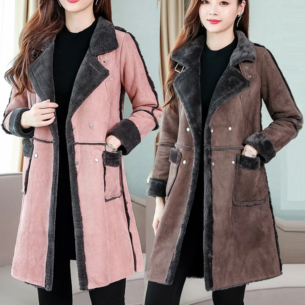 Женская зимняя офисная куртка с отворотом и длинным рукавом из плотного бархата