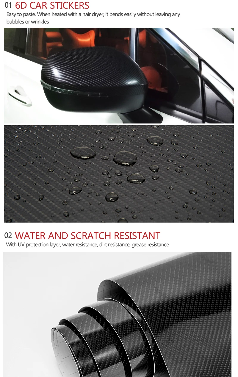 6D Carbon Fiber Vinyl Wrap Film High Glossy Car Sticker Carbon Fiber Vinyl Car Wrap Sheet Roll Film