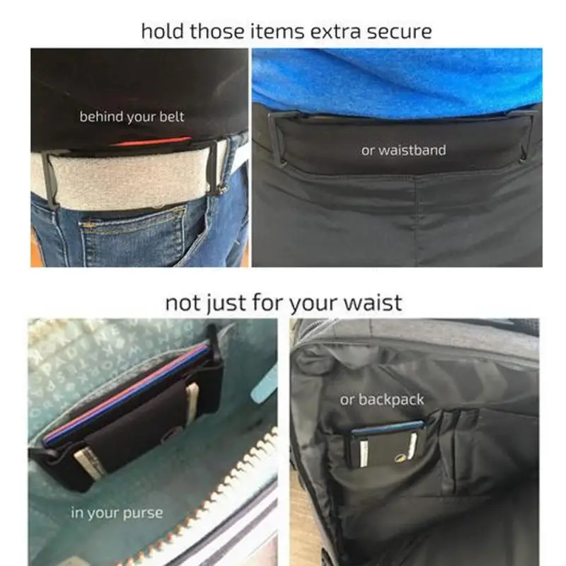 Никаких карманов или ремней не требуется, предоставляя вам легкое и безопасное решение для переноски карт, телефонов или паспортов.