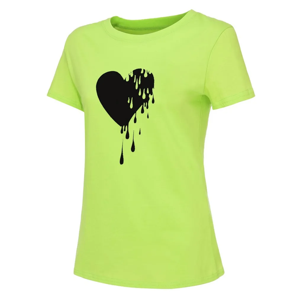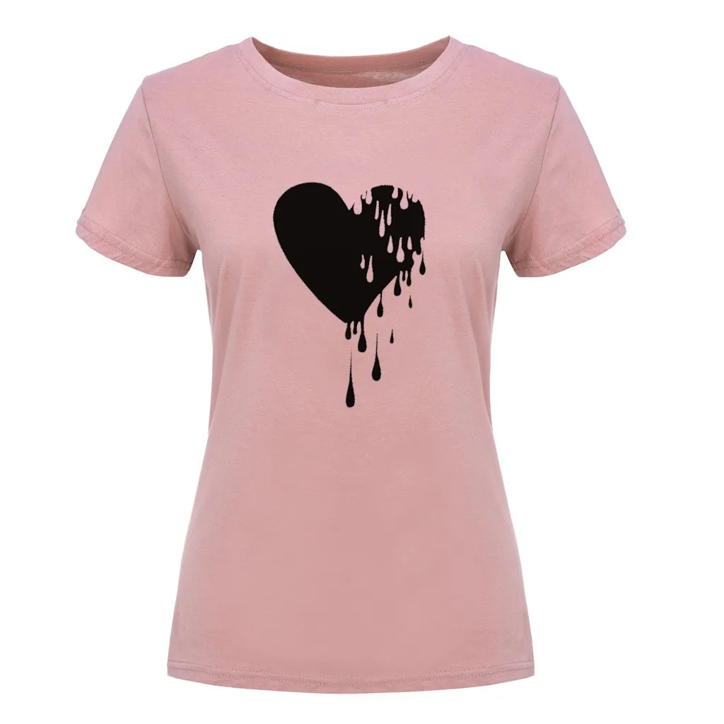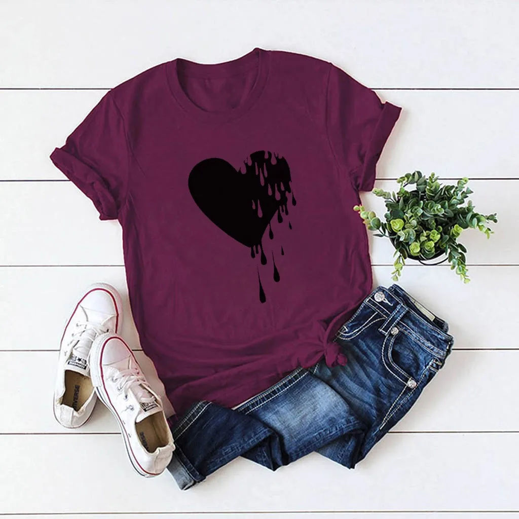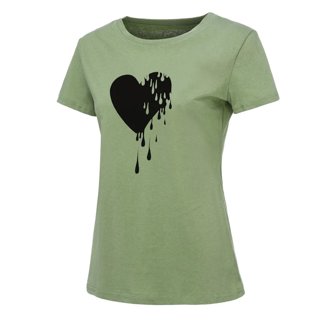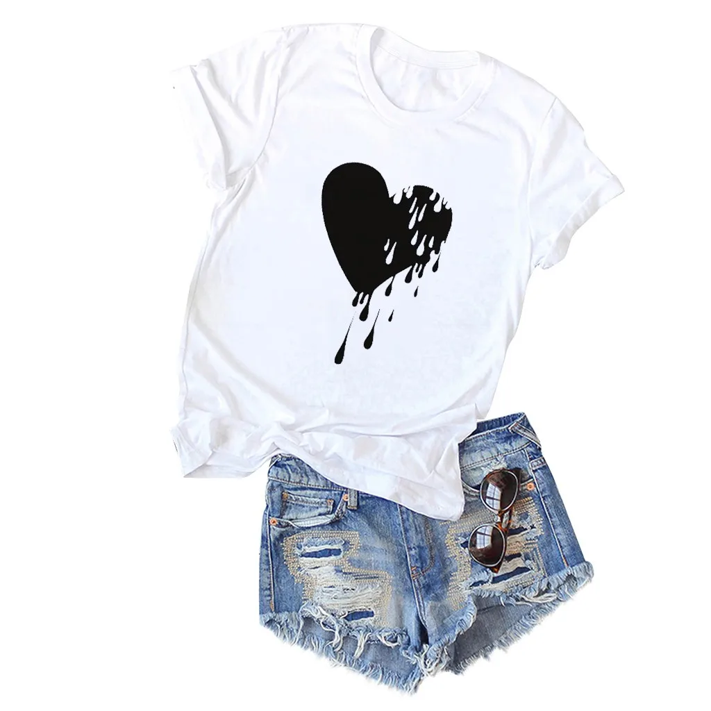 Модный женский Повседневный хлопковый топ с круглым вырезом и коротким рукавом с принтом Love; Большие размеры