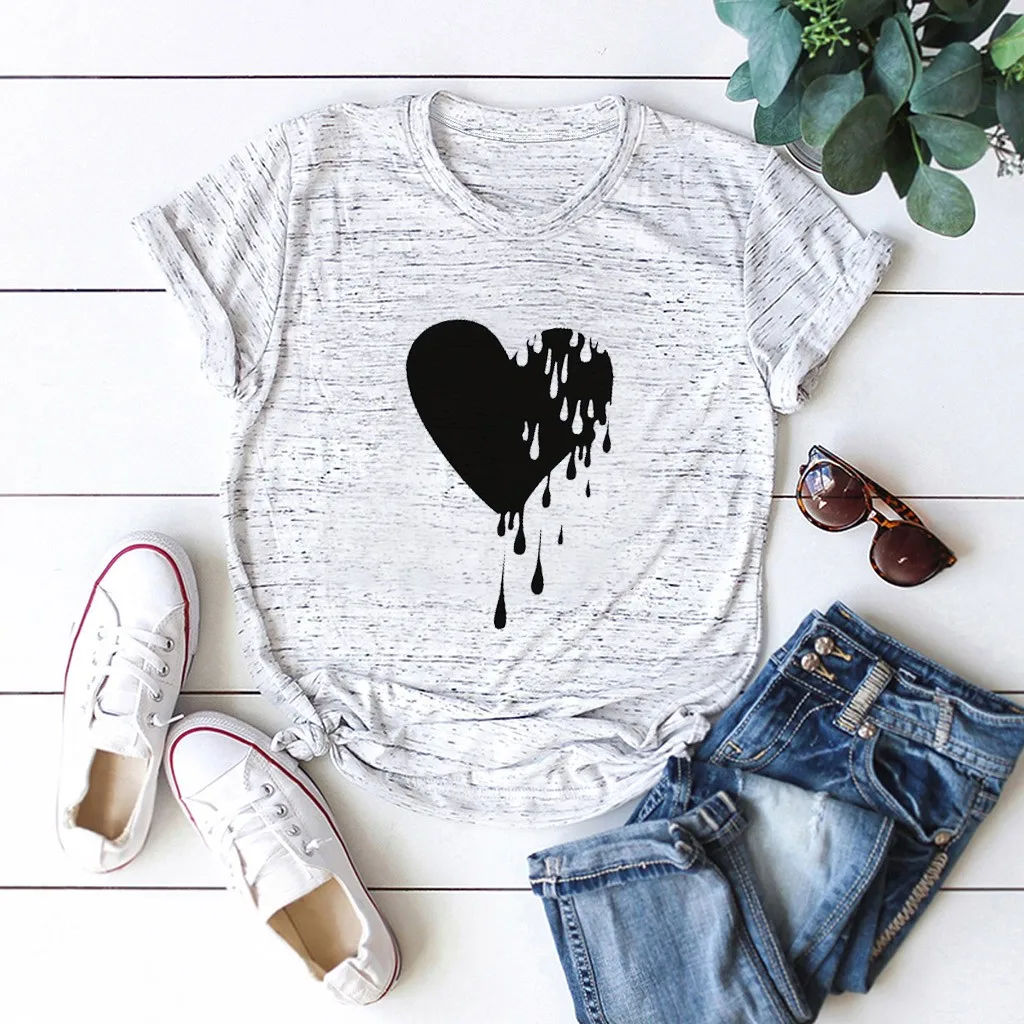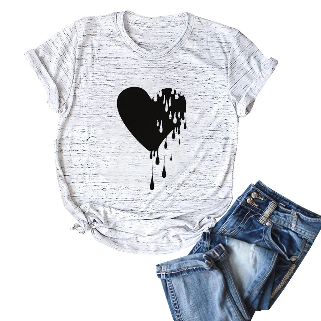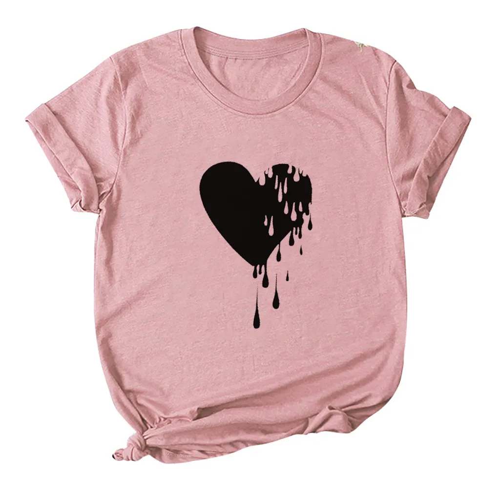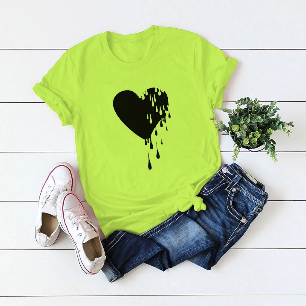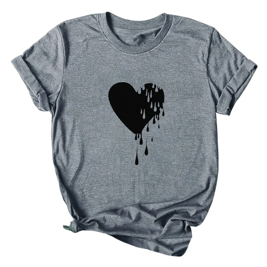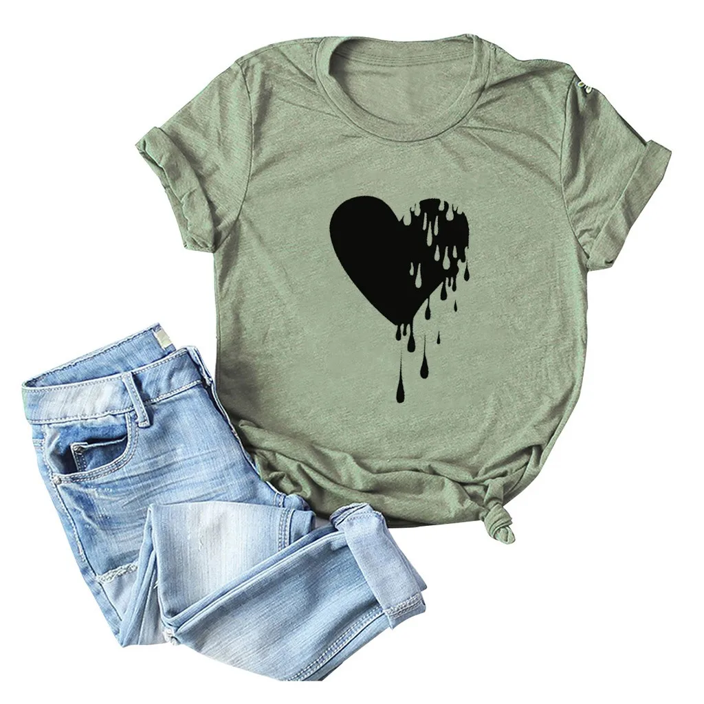 Модный женский Повседневный хлопковый топ с круглым вырезом и коротким рукавом с принтом Love; Большие размеры