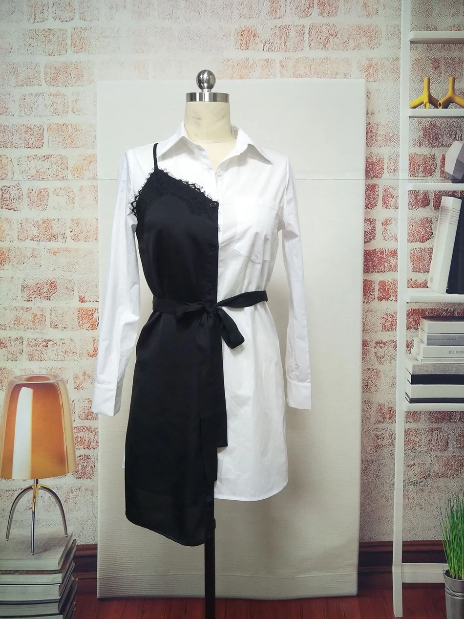 Весенние кружевные платья черного цвета с воротником-стойкой и длинным рукавом