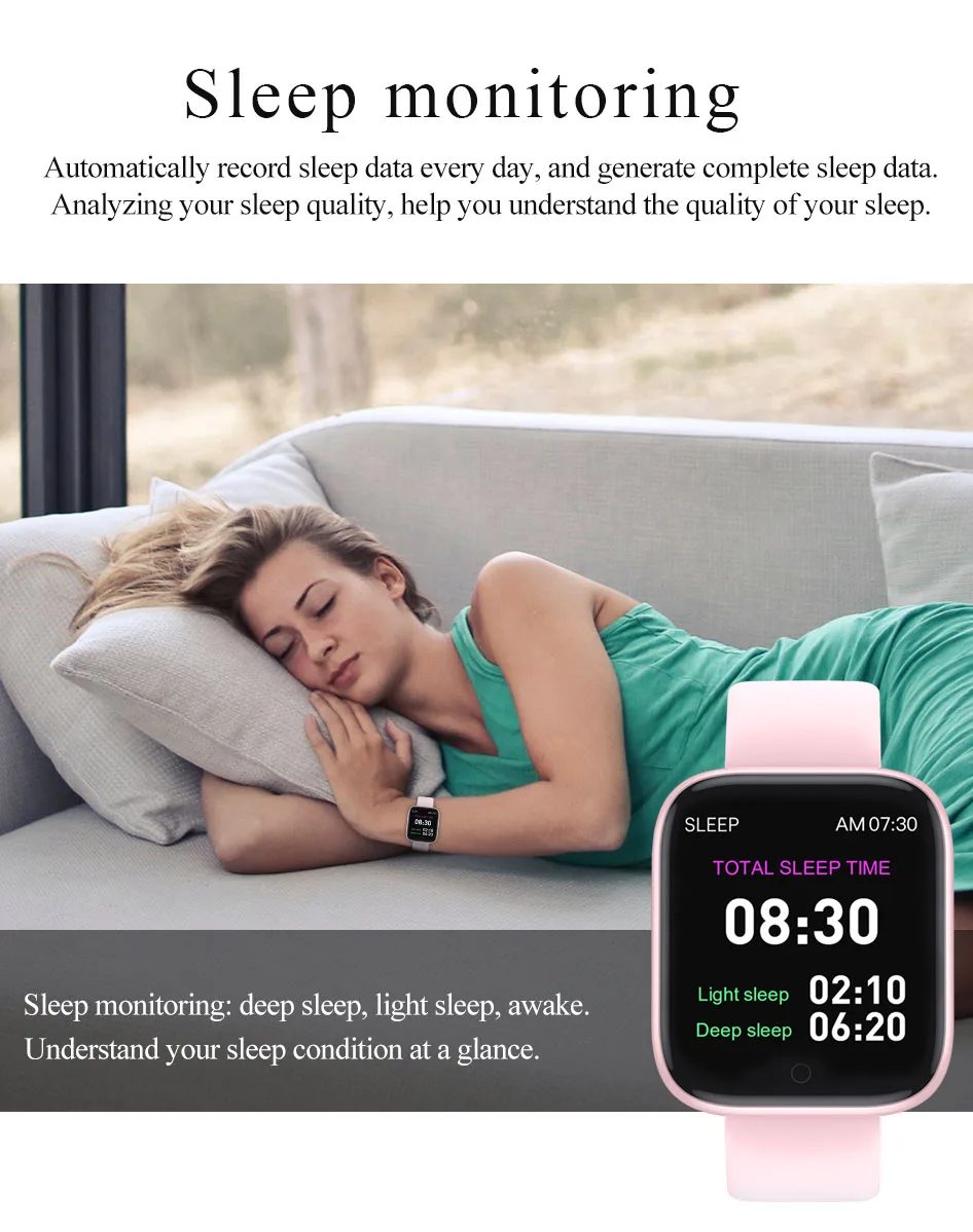 Sleep monitoring:deep sleep,light sleep,awake.