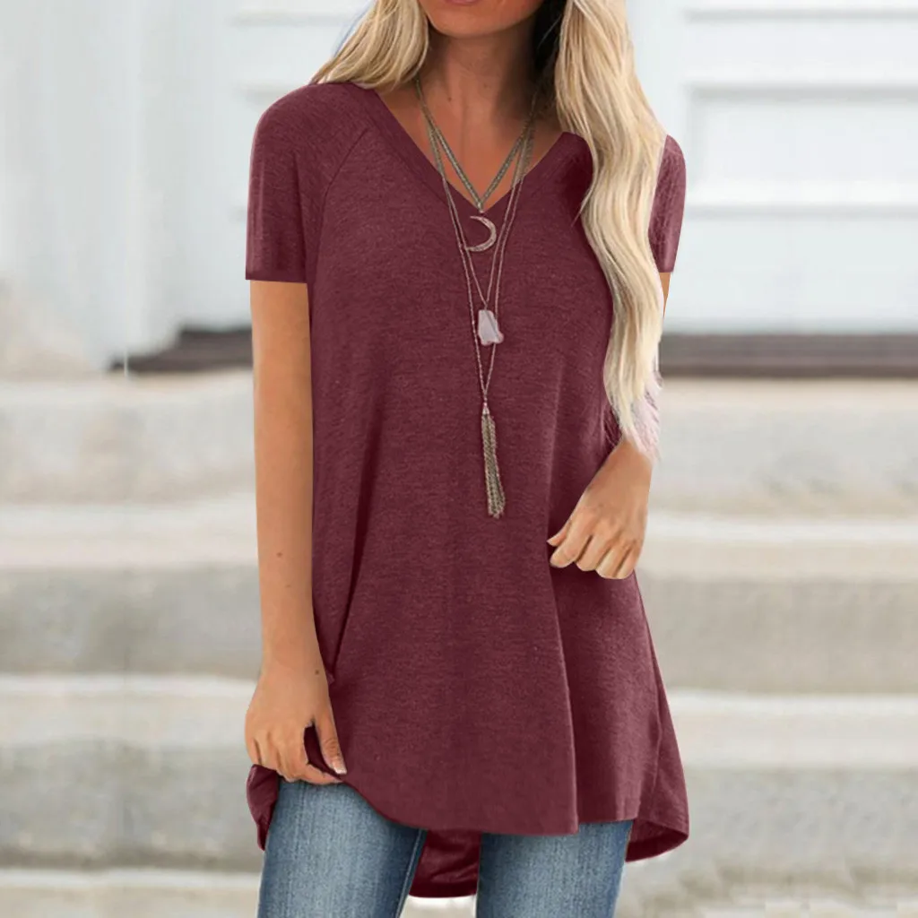 Женская модная длинная футболка с v-образным вырезом и принтом размера плюс
