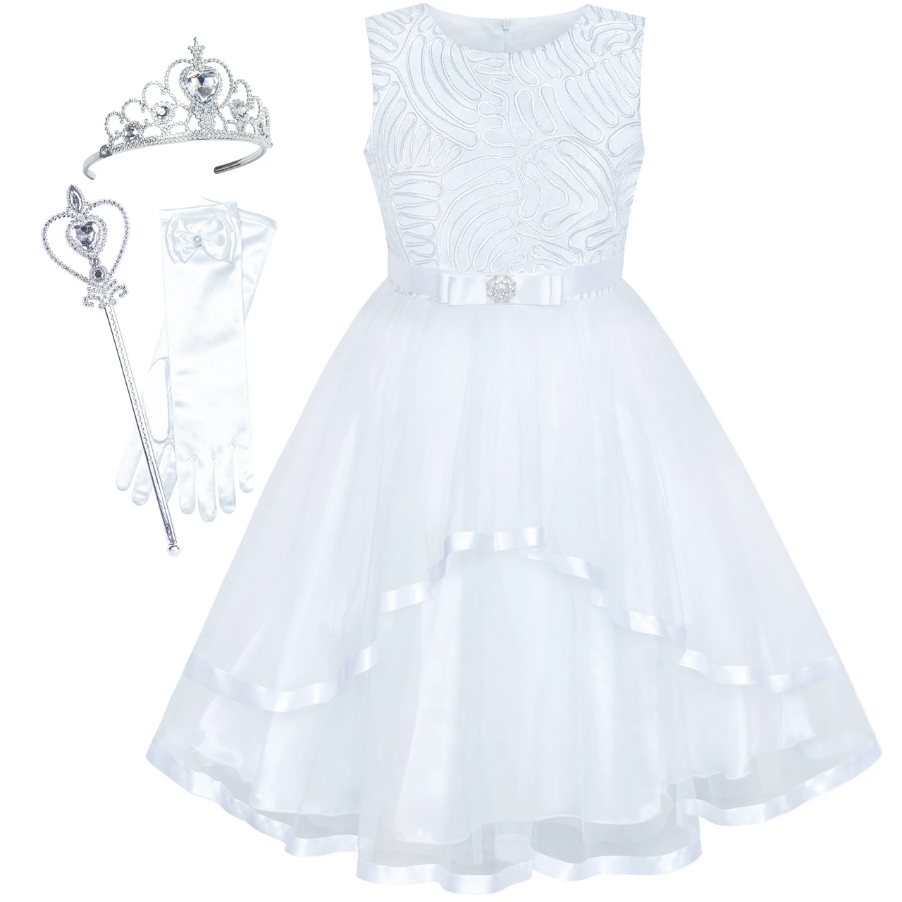 Волновой Подол платье уникального дизайна для ваших маленьких и крупных девочек. Сверкающий Топ и пояс со стразами. Это элегантное платье с волнистым подолом многоярусная юбка из тюля. Идеально подходит для любого особого случая, свадьбы, платья для первого причастия и праздничного платья. Размеры отвечают средним параметрам по возрасту для девочек, информация представлена только для справки. Для наиболее точной посадки мы рекомендуем проверить точные измерения перед покупкой.
