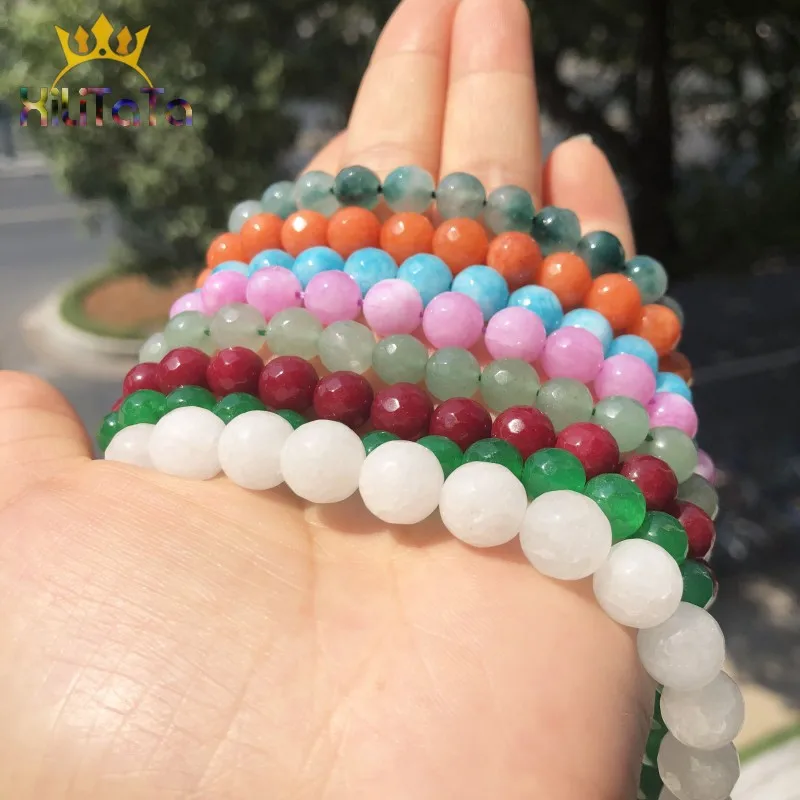 Items Name:Faceted Natural Stone Beads Blue Orange Pink Chalcedony Round Beads For Jewelry Making DIY Bracelet Ear Studs Accessories 15''