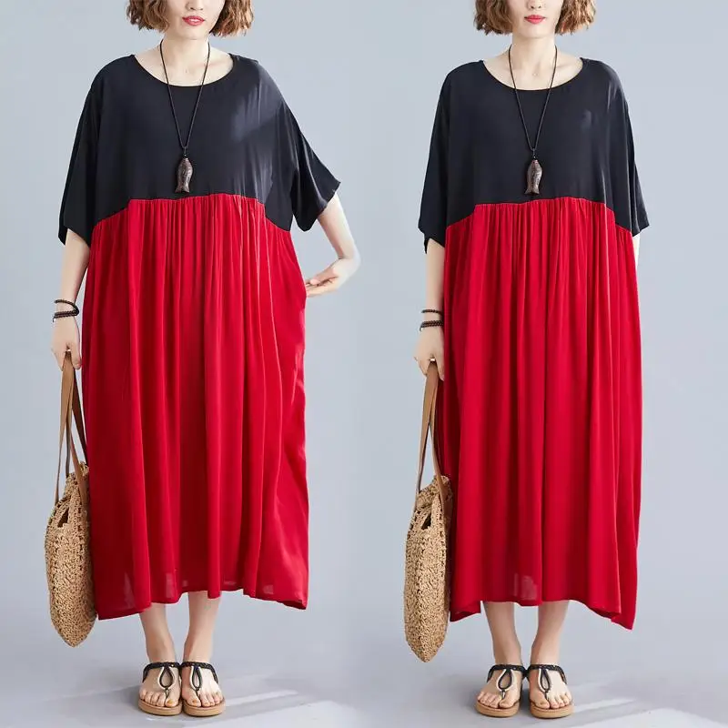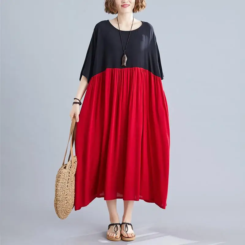 Платье женское хлопковое в стиле оверсайз длинное лоскутное пэчворк черное