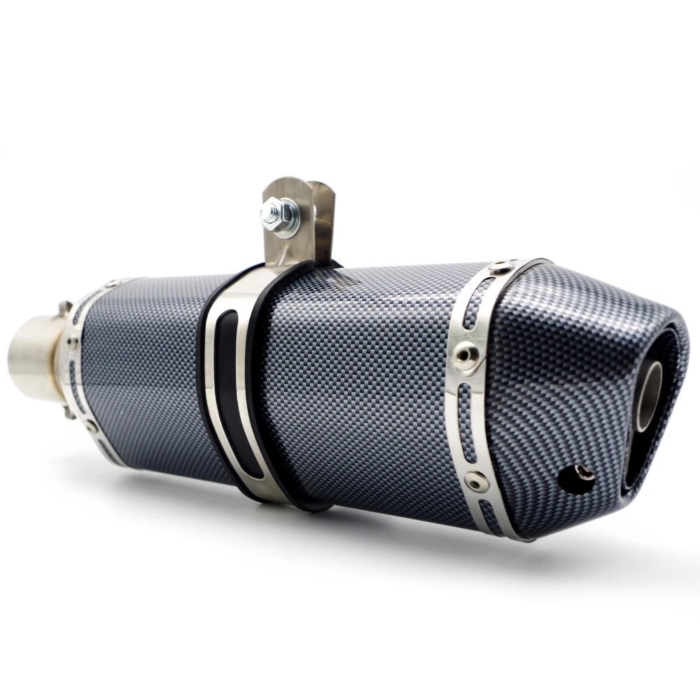 Это универсальная Модифицированная выхлопная труба мотоцикла, она подходит для моделей мотоциклов калибра 51 мм (с адаптером 36-51 мм). Этот продукт был изготовлен из высококачественной нержавеющей стали и Украшен узором из углеродного волокна. Он имеет отличное качество изготовления и хорошую текстуру. Для очень немногих моделей, установка может потребовать некоторой простой сварки и сборки.