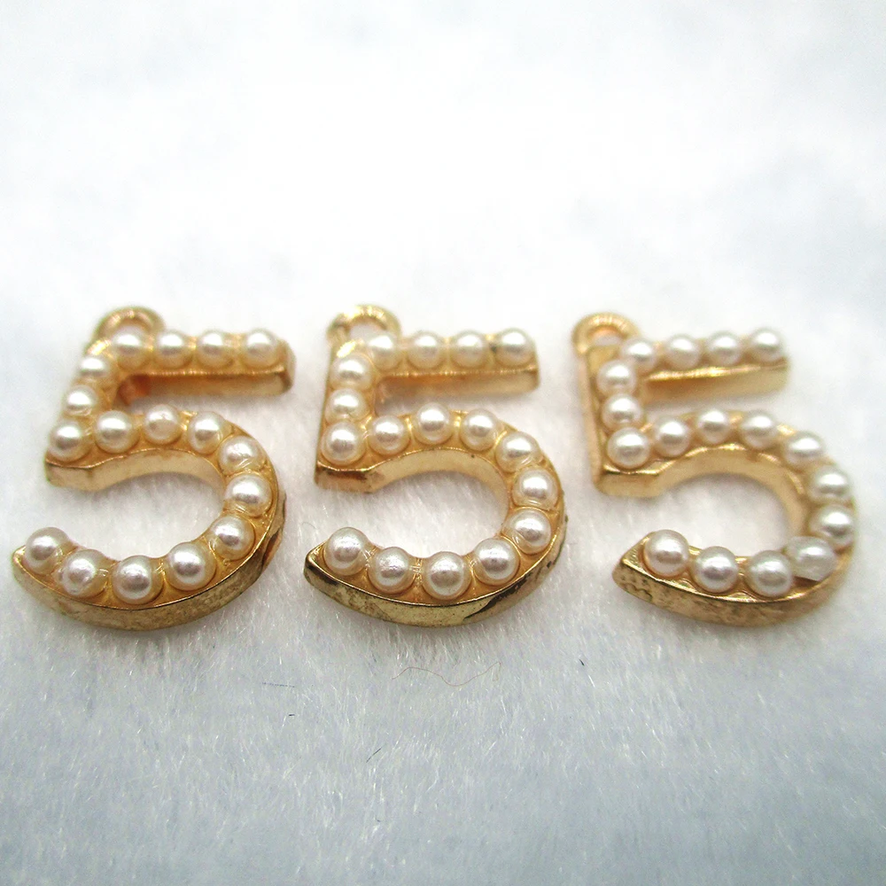 10 шт./упак. большие и маленькие две модели спринтом Цифры 5, подвески с жемчугом и золотой цвет кулон DIY Браслеты ожерелье ювелирные изделия аксессуары XL424
