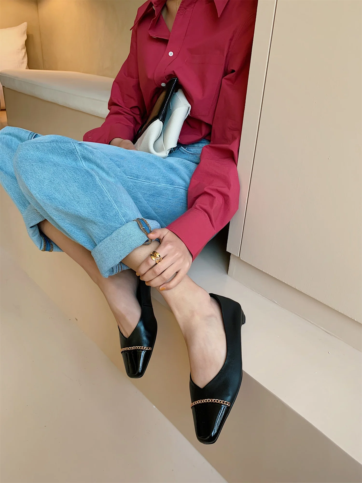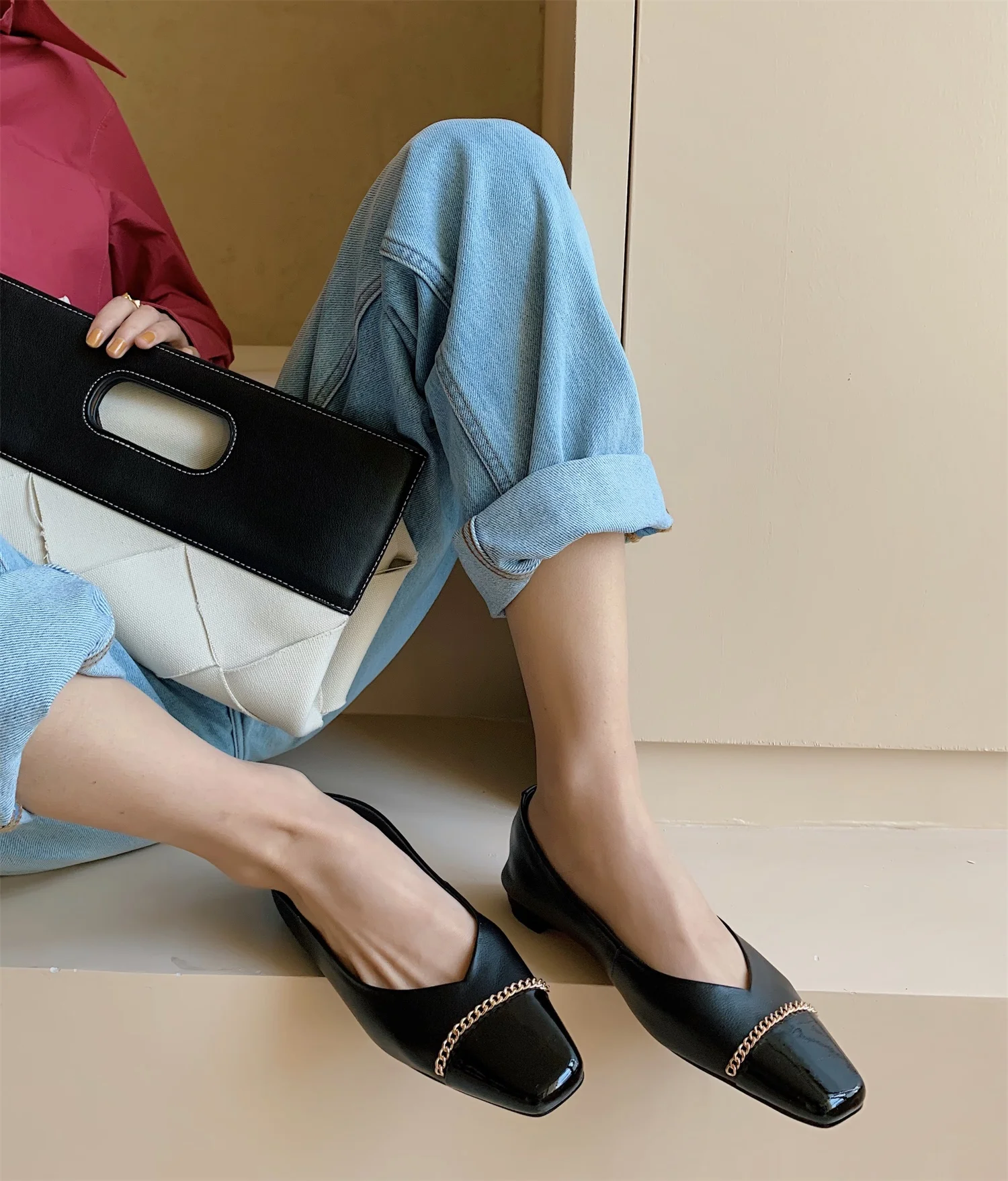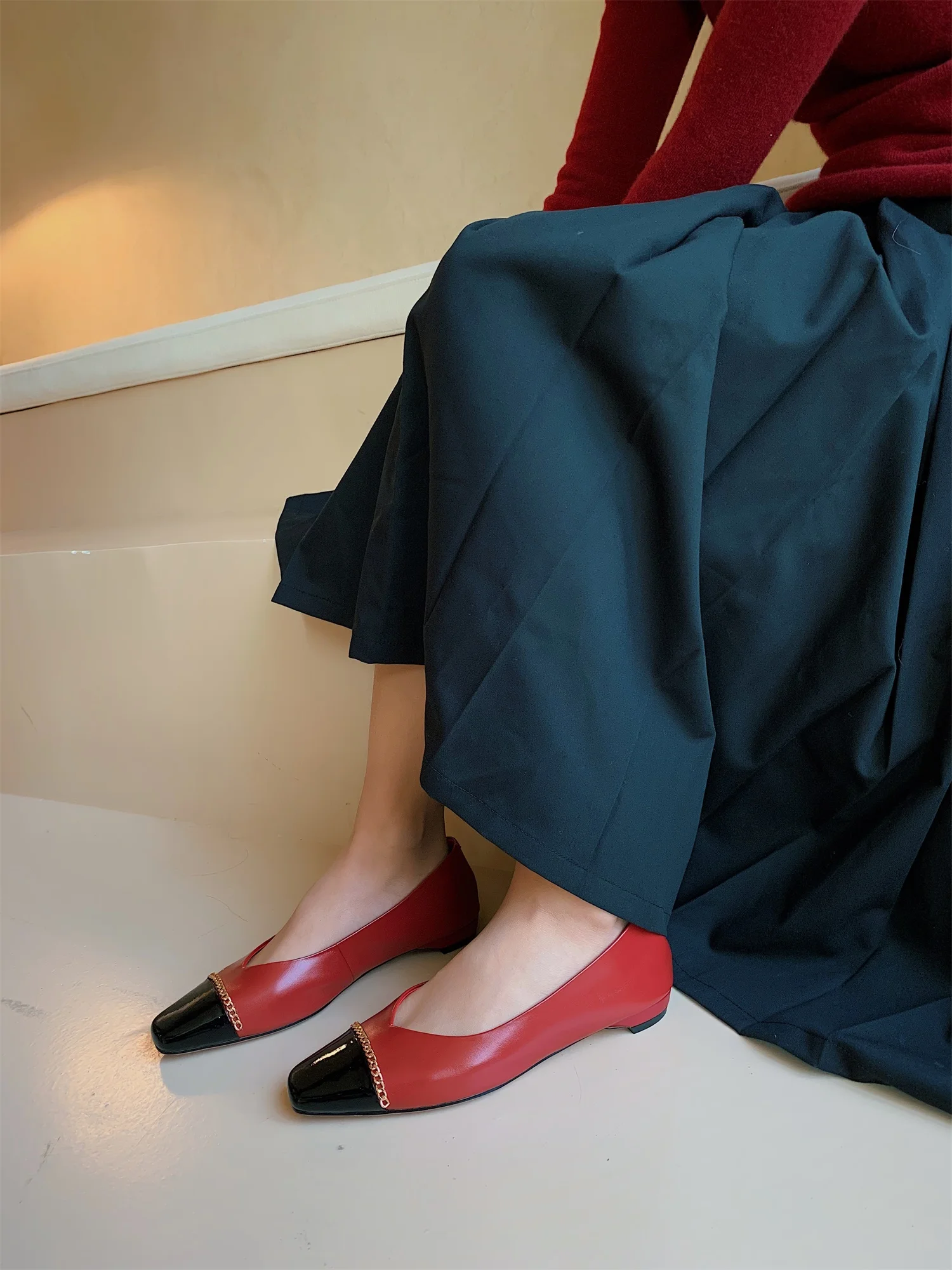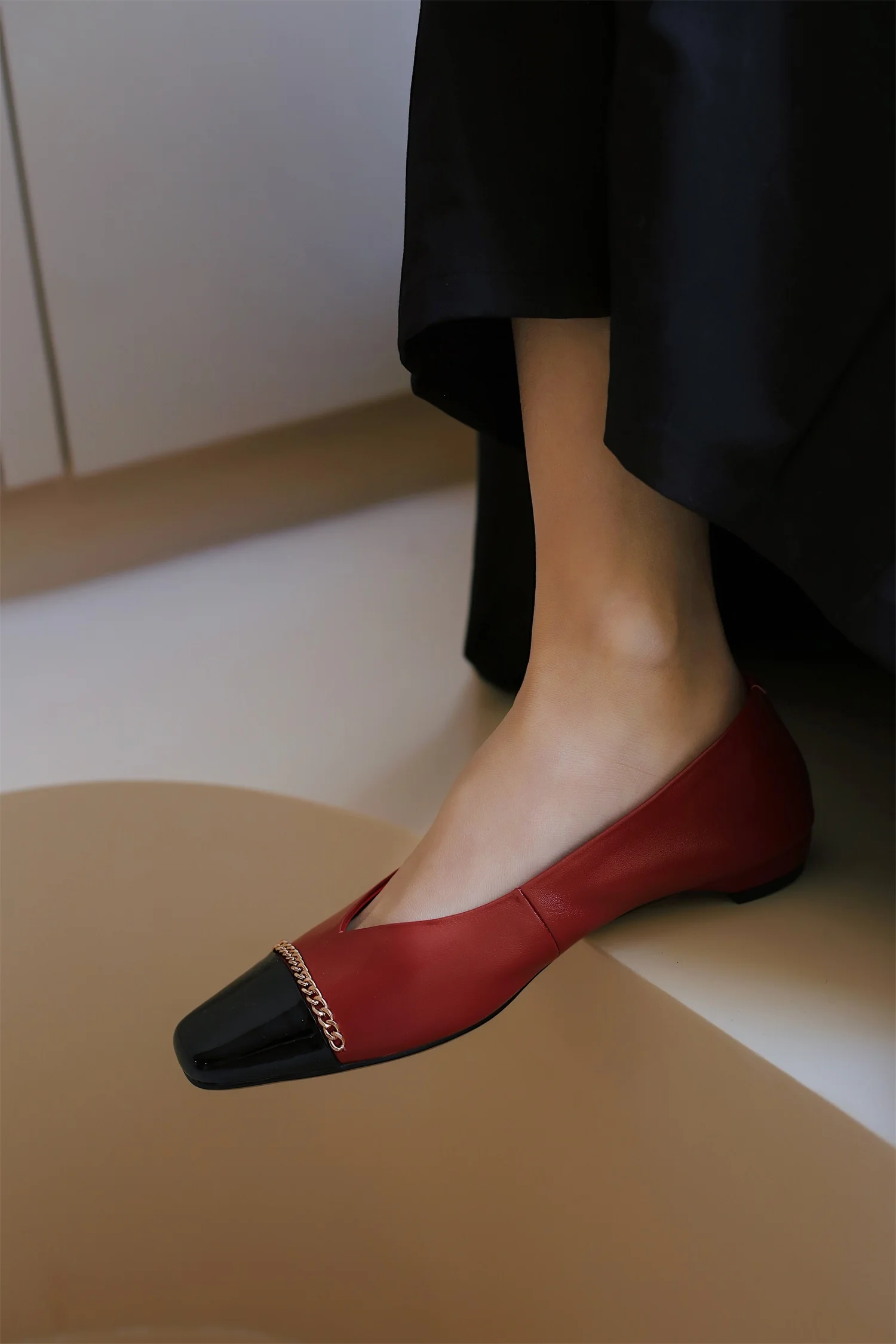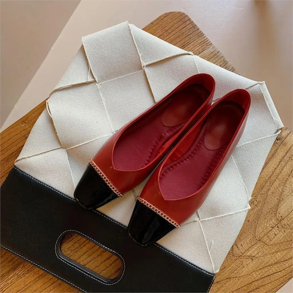 BESCONE/Новые модные женские туфли на плоской подошве; Смешанные цвета; Обувь из коровьей кожи высокого качества с украшением в виде цепочки; Повседневная обувь на плоской подошве без шнуровки; BO418