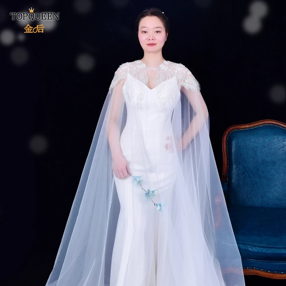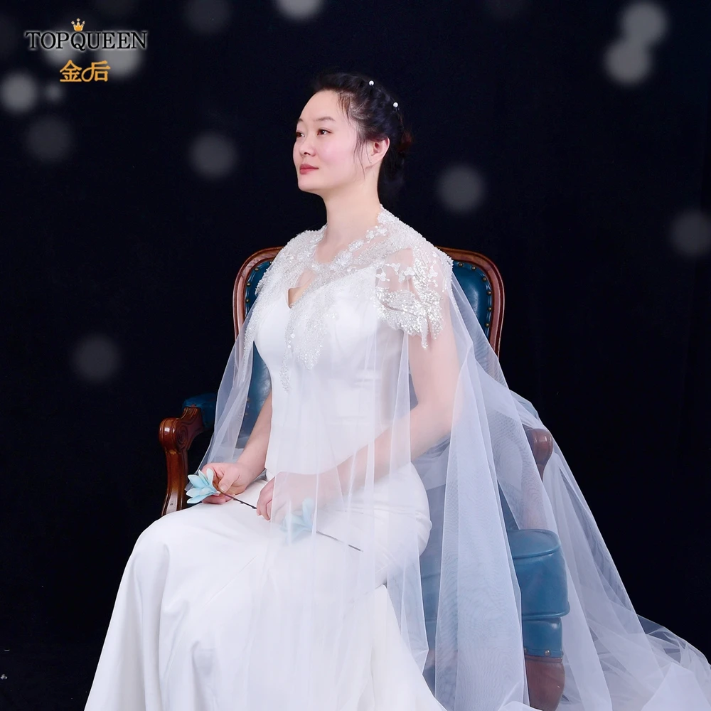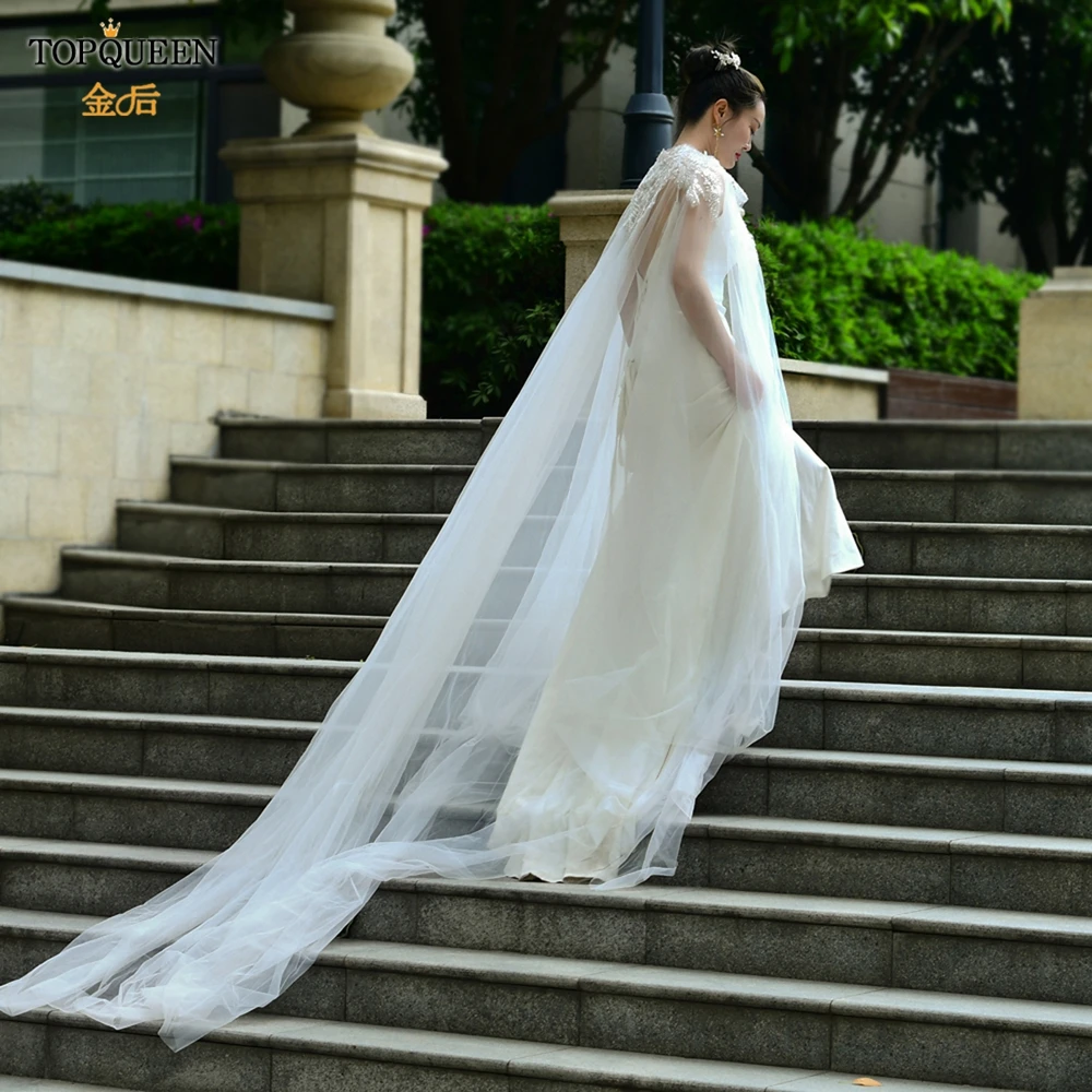 TOPQUEEN белый для женщин вуаль накидка тюль кружево Аппликация 3 м элегантные свадебные накидки Свадебные Обертывания длинный поезд шали плащ G25